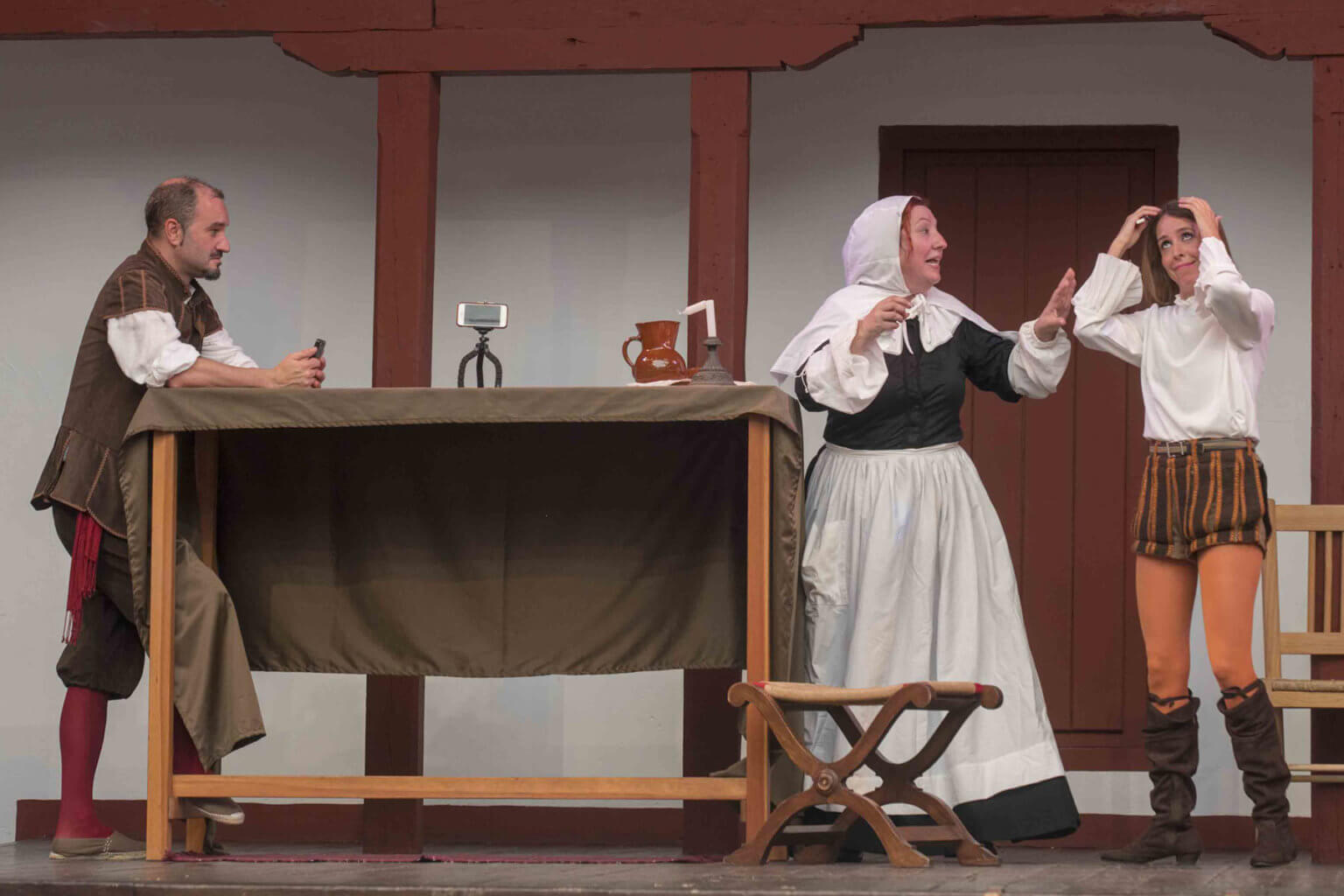 “De doblones y amores” forma parte de una trilogía de las Teatralizadas del Corral de Comedias de Almagro.  Es un divertimento al estilo de los entremeses del Siglo de Oro donde los actores recrean los avatares y la picaresca de los cómicos de la época.