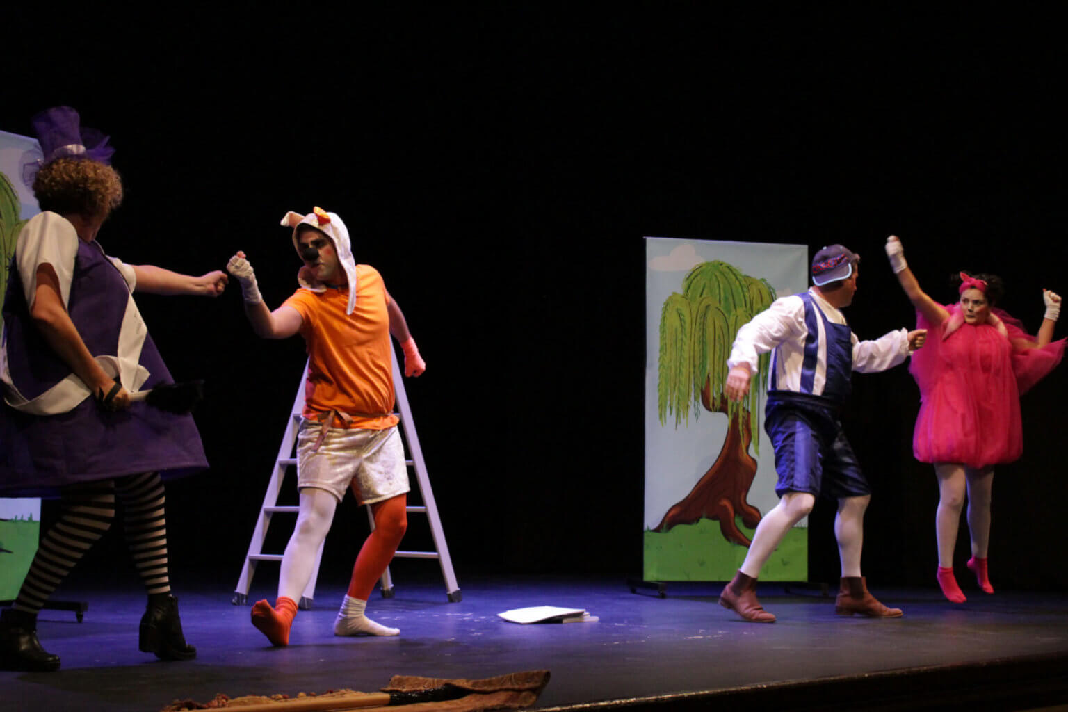 Para hacerlo, Misha (una gata), Rufus (un perro), Carolus (un primer actor un tanto despistado), Rabelín (una directora y primera actriz un tanto chillona) y la Señora Alcaldesa de Villaproscenio (que en el colegio había hecho teatro de pequeña) se tendrán que poner manos a la obra y con la ayuda del público representar “EL PERRO DEL HORTELANO”.