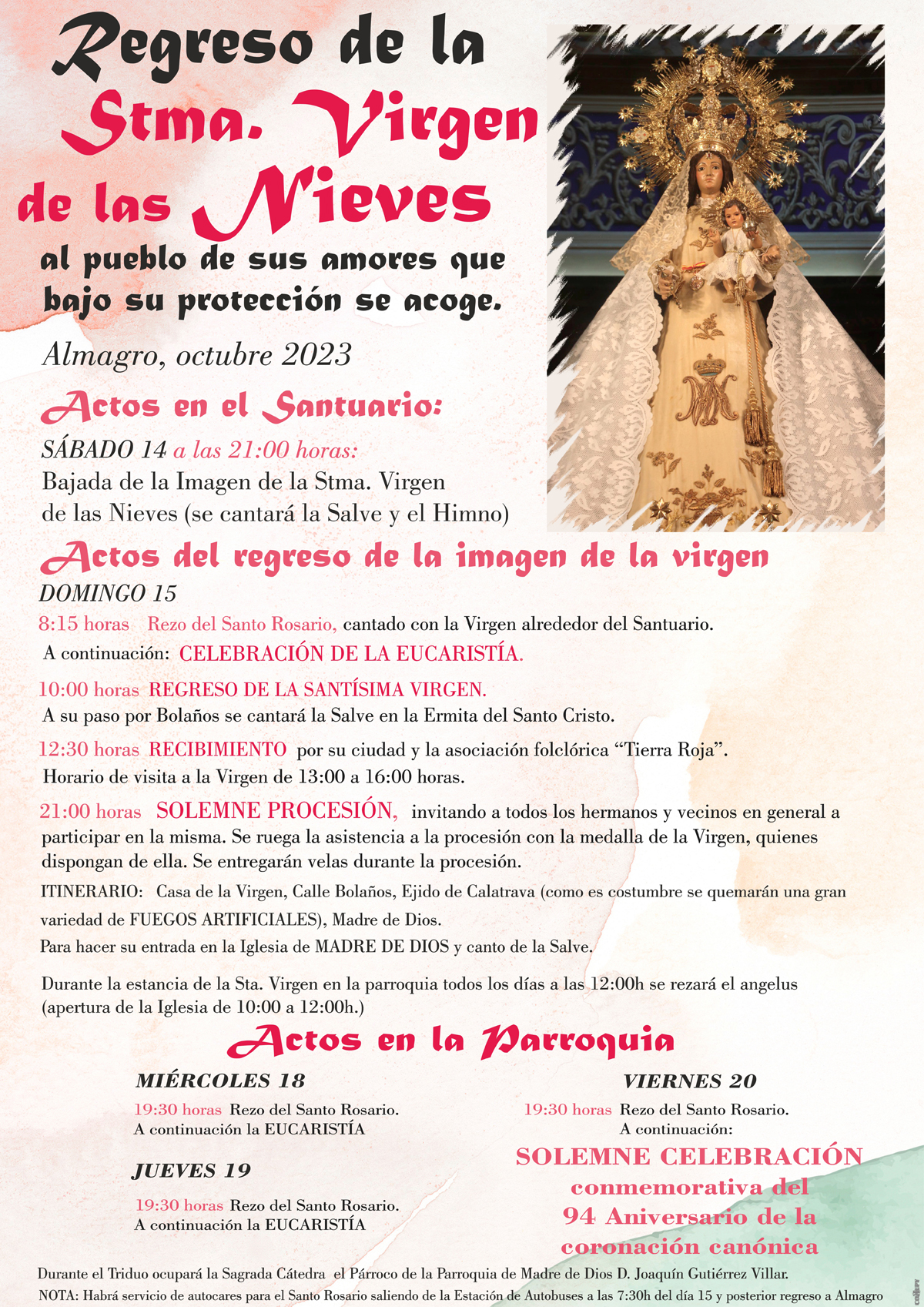 Tradicional regreso de la Patrona de Almagro, la Stma. Virgen de las Nieves, desde su santuario.