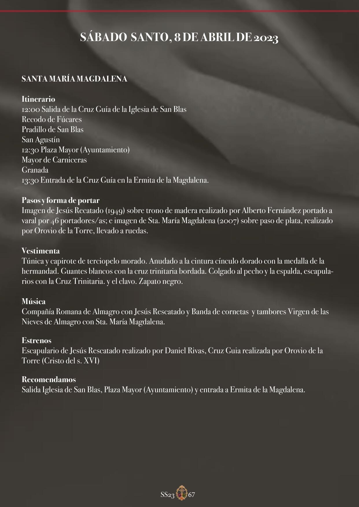 Sábado Santo 2023: Santa María Magdalena