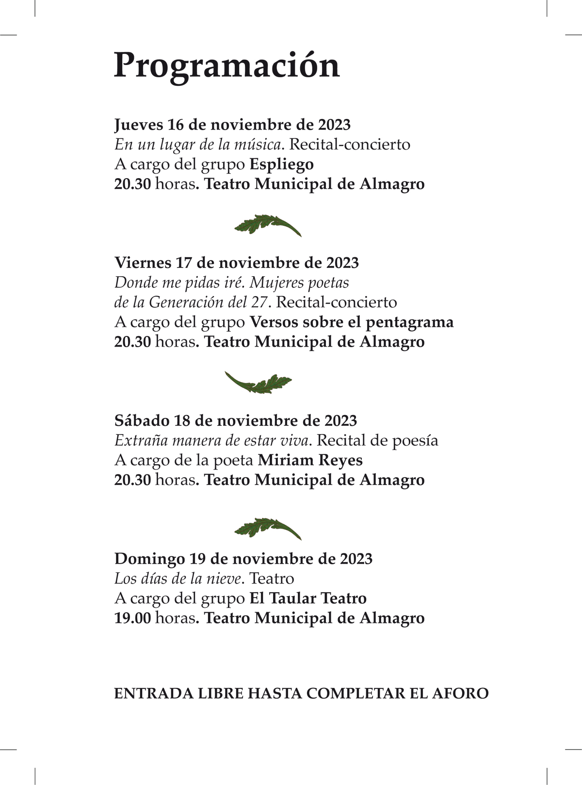 Se celebra del 16 al 19 de noviembreen el Teatro Municipal, con entrada libre hasta completar aforo.
