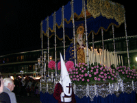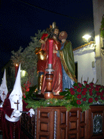 ón en el Huerto de 1942 fue el primero de los tres pasos que procesionó en el Jueves Santo. El Beso de Judas, talla de 1957 y Nuestra Señora de los Dolores cerraron la procesión. En esta ocasión, la Virgen de Dolores estrenó una saya donada por un matrimonio de la localidad. El dibujo, realizado por Fray Ricardo de Córdoba, Franciscano Capuchino de Sevilla, fue bordado en los talleres de Mariano Martín Santoja de Sevilla.