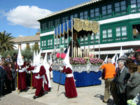 A la llegada del Resucitado a la Plaza Mayor, la Junta de Hermandades leyó un manifiesto a favor de la vida