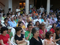 El patio del Palacio de Fúcares se quedó pequeño para albergar a los varios centenares de personas que asistieron a la clausura del curso 2008/2009 de la Universidad Popular de Almagro. Un acto muy especial en el que se volvió a tener presente los recién cumplidos veinticinco años de la institución educativa y cultural con más solera en la loc