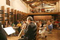 de sus “Noches en la Bodega”, esta vez con la presencia del jazzman Javier Bercebal, quien propondrá a los asistentes mezclar el buen vino, la compañía y el jazz de vanguardia. A partir de las 21.30 comenzará esta actuación, que dará por concluido este ciclo de maridaje entre música y vino. Precisamente, el anterior Concierto de Saxofones resultó un nuevo éxito al llenarse prácticamente el aforo de Bodegas Naranjo, en “Noches en la bodega”. El Cuarteto de Saxofones de Ciudad Real, uno de los grupos de música de cámara con más prestigio de toda la región y con una trayectoria de veinte años, interpretó un amplio repertorio, que bajo el título “Homenajeando a Pedro Iturralde” mezclaron estilos desde la copla y el jazz hasta transcripciones de música clásica de diferentes épocas. La música y el vino con aperitivo dieron alegría a los asistentes, que salieron contentos del evento.
