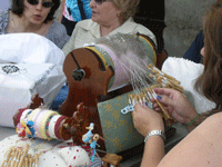 sistieron a este décimo tercer encuentro comenzaron su labor entre bolillos e hilos mostrando su magnífico trabajo a los turistas, curiosos y demás personas que se pasearon por el empedrado centenario de la plaza, escuchando de primera mano las palabras de Maldonado, que alabó “una labor encomiable que supo sacar artesanía de dos materiales tan sencillos como la madera con los bolillos y el hilo de algodón” agradeciendo igualmente la visita de todas las mujeres que se han desplazado a este rincón de la mancha que les acoge con todo el cariño.