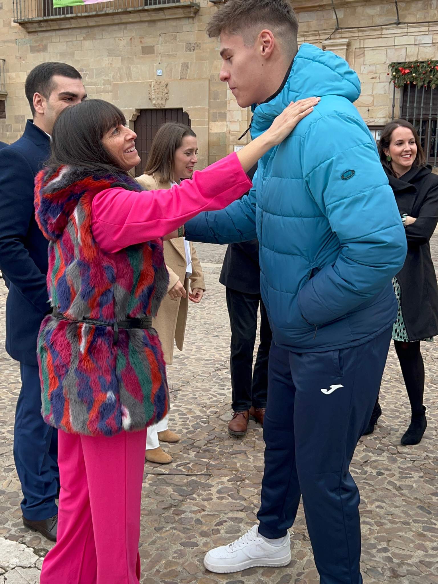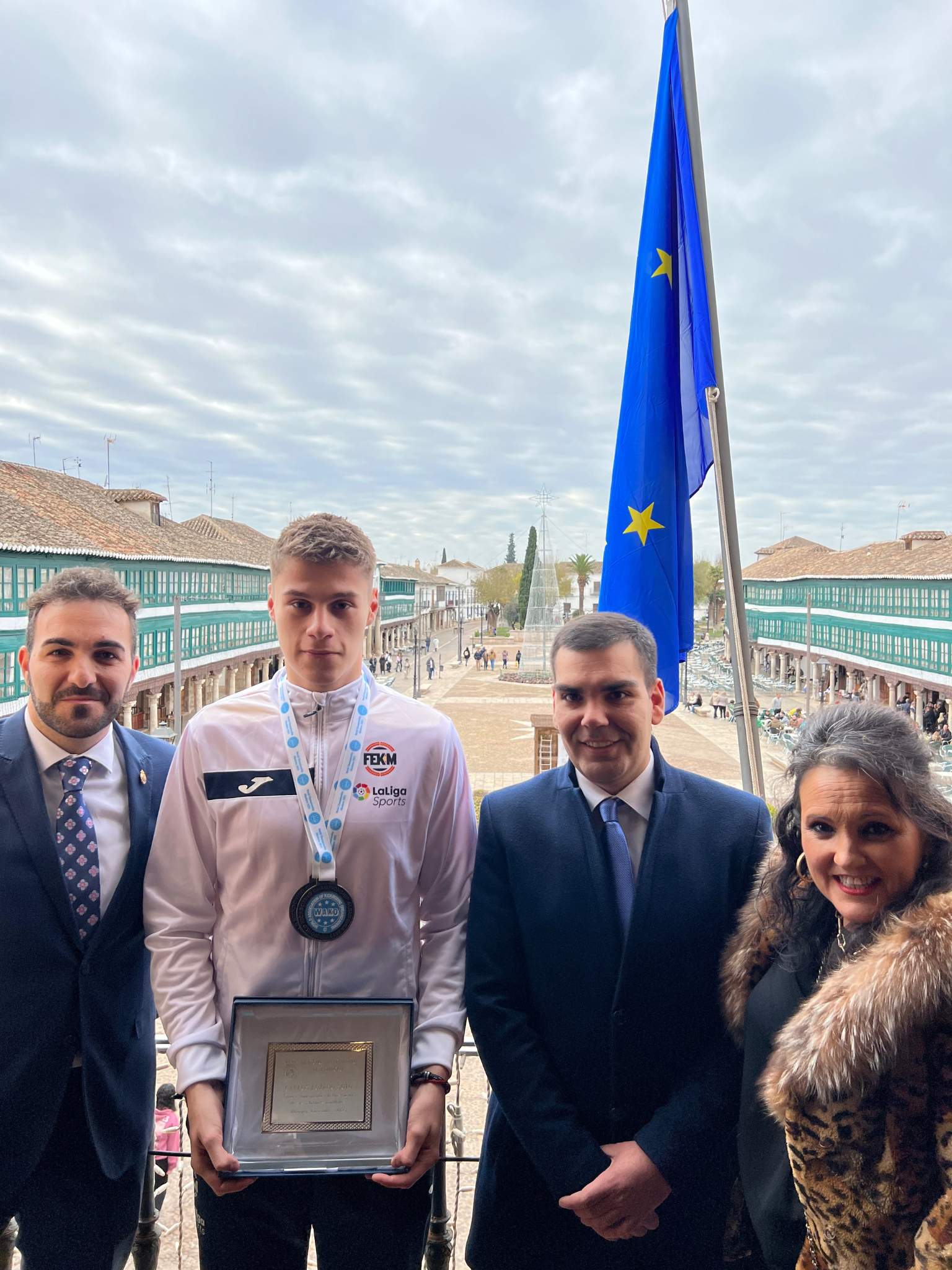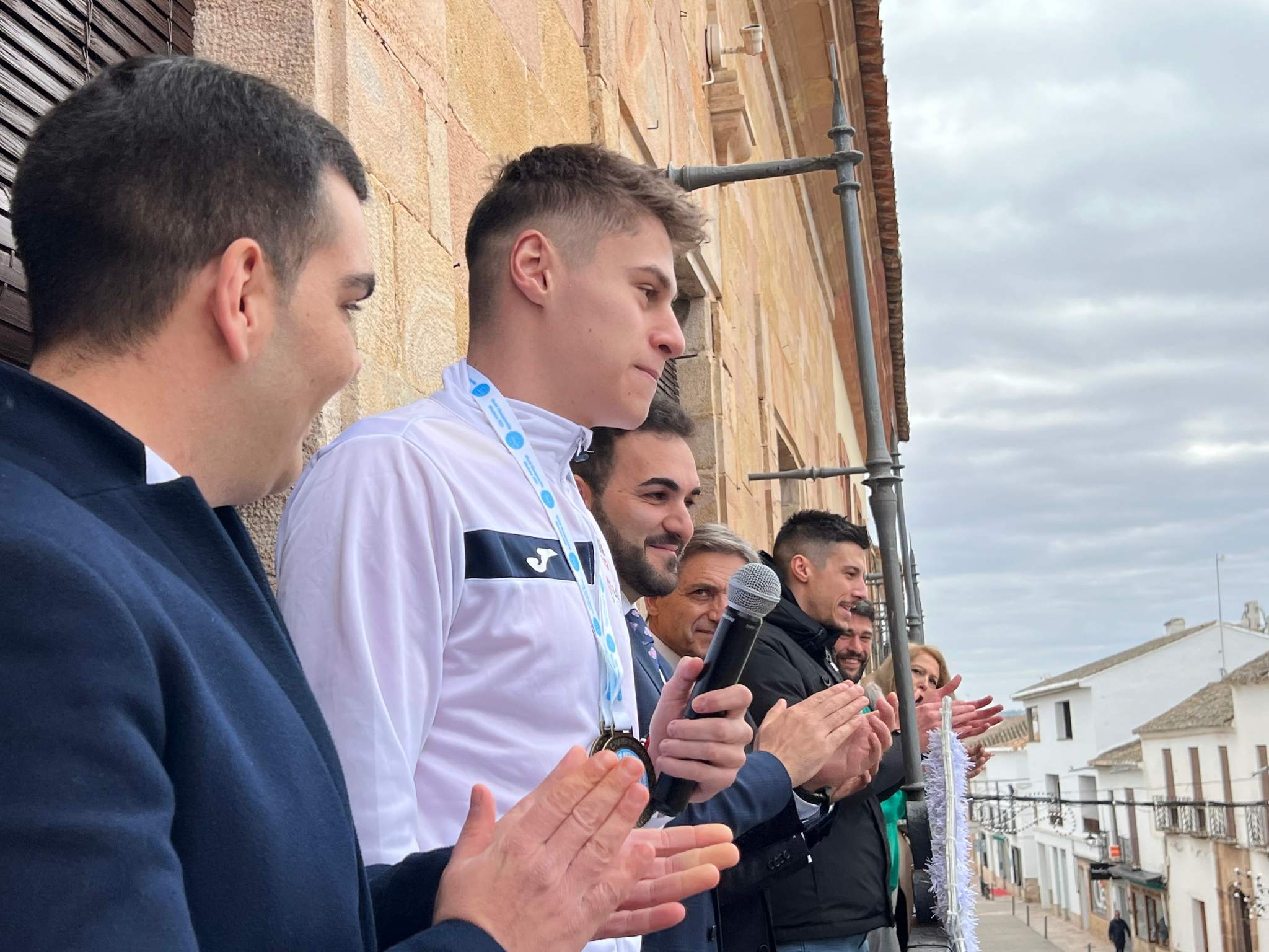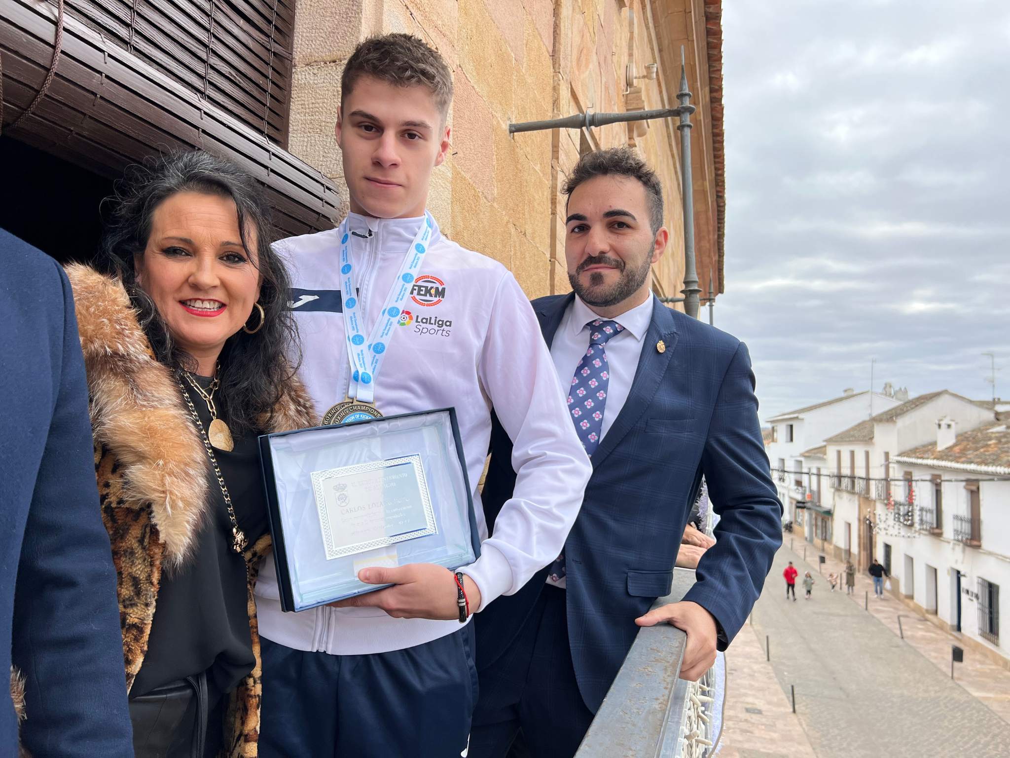 Un gran número de vecinos, familiares y amigos no han dudado en acudir a la Plaza Mayor para vitorear y felicitar al joven, considerándolo un ejemplo de sacrificio, humildad y constancia. También ha estado presente la Corporación Municipal, que le ha hecho entrega de una placa como reconocimiento a su trabajo y esfuerzo.