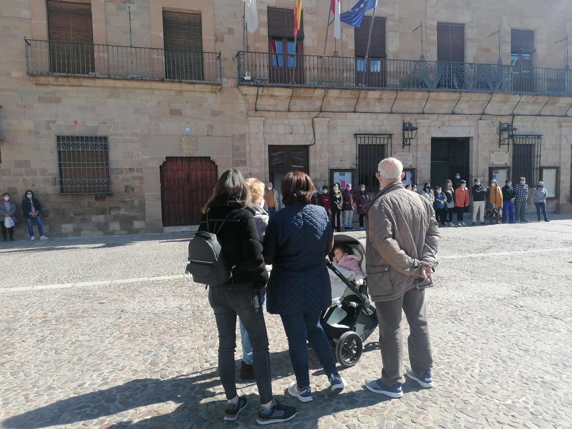 A las 12 en punto, vecinos de la ciudad y parte de la Corporación Municipal, encabezado por el alcalde, Daniel Reina, se han concentrado en la Plaza Mayor como muestra de repulsa a una guerra sinsentido y en apoyo a los miles de ucranianos que se han visto obligados a abandonar su país o a empuñar un arma.
