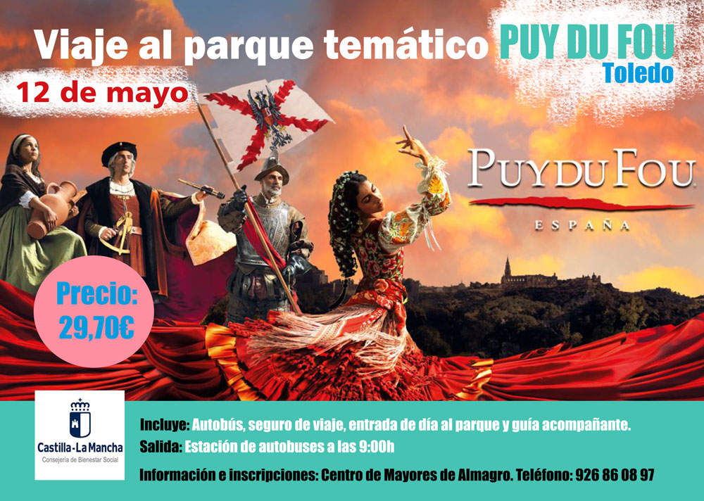Además, se ha organizado una visita al parque temático Puy du Fou en Toledo. El viaje será el 12 de mayo. Coste: 29,70 euros