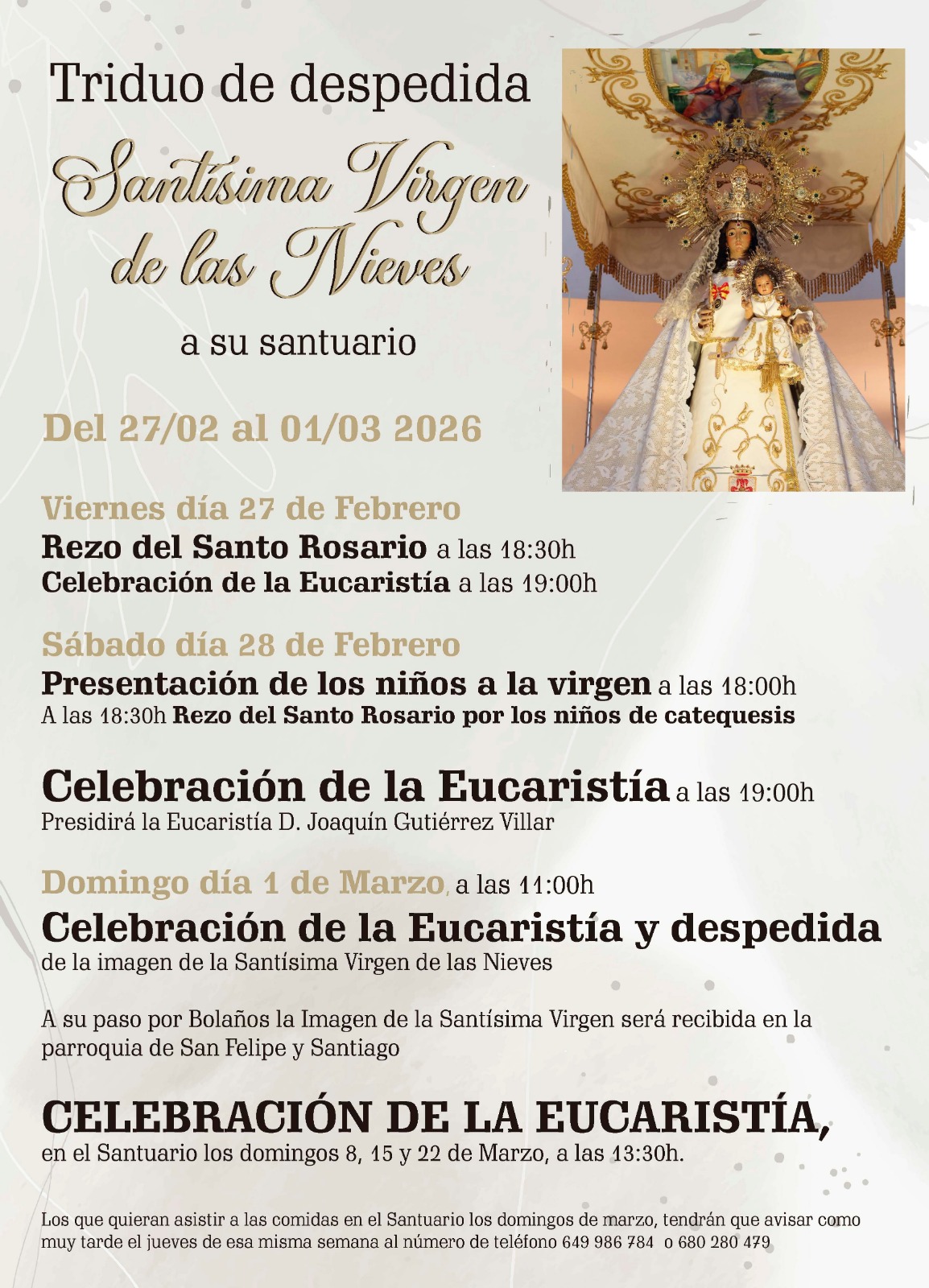 Triduo de despedida Santisima Virgen de las Nieves