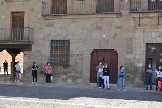 La Corporación Municipal del Ayuntamiento de Almagro se ha sumado a la invitación que el Gobierno nacional propuso ayer de guardar un minuto de silencio en recuerdo a las personas fallecidas por el coronavirus hoy, miércoles. A las 12 horas, concejales, trabajadores del Consistorio y vecinos de la ciudad se han paralizado delante de la puerta del Ayuntamiento, de sus casas y de sus negocios durante un minuto. El Ayuntamiento invitaba unas horas antes a guardar un respetuoso minuto de silencio en recuerdo y homenaje a las victimas y fallecidos de esta pandemia mundial en cualquier lugar, cualquier rincón, sin concentraciones en ningún punto concreto.