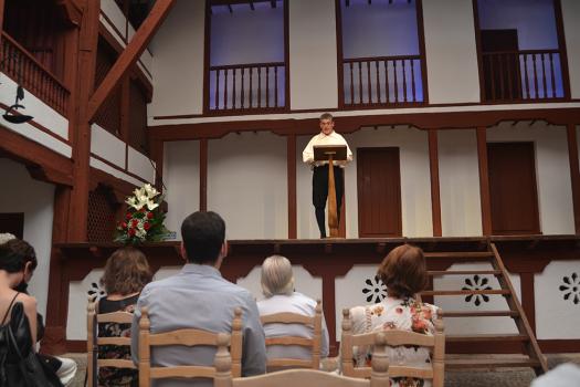 Para cerrar el acto, el actor Antonio León, de la compañía Corrales de Comedias, ha dado voz a Leonardo de Oviedo del libro “De dragones, de estrellas y del Corral de ver y oír las Comedias” de Montserrat Rayo.