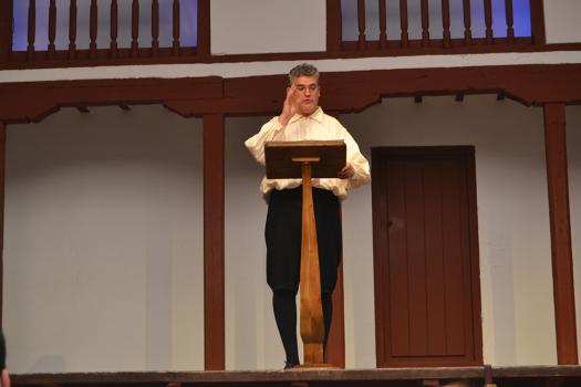 El acto conmemorativo, presentado por el concejal de Cultura, Dionisio Muñoz, ha comenzado con la representación de “El último corral” de la compañía Teatro Corrales de Comedias. Precisamente una obra que cuenta cómo surgió este corral en el siglo XVII contextualizado en su época de la voz de sus protagonistas sobre las tablas: los actores.