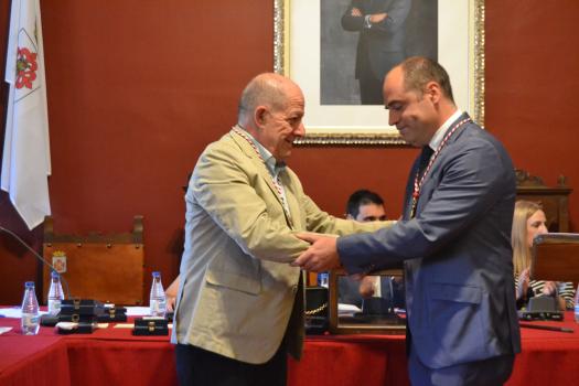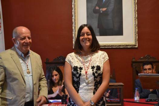 Pasados unos minutos de las 12 horas ha comenzado la sesión constitutiva de la nueva Corporación del Ayuntamiento de Almagro. El acto ha seguido los pasos establecidos por la Ley Orgánica de Régimen Electoral General. Primero, la constitución de la Mesa de Edad con el concejal de mayor y menor edad, Dionisio Muñoz y Francisco Javier Núñez. A continuación, los trece concejales que conforman la Corporación Municipal del Ayuntamiento de Almagro, en el orden acordado por los candidatos que encabezan las correspondientes listas han prometido (8 concejales del PSOE) y jurado (3 Ciudadanos y 2 PP) por su conciencia y honor,” cumplir fielmente las obligaciones del cargo de concejal del Excelentísimo Ayuntamiento de Almagro, con lealtad al Rey, y guardar y hacer guardar la Constitución como norma fundamental del Estado». El concejal de mayor edad ha sido el encargado de imponer a cada uno de ellos la medalla del ayuntamiento tras prometer su cargo en primer lugar y recibir la medalla de manos de la secretaria del Ayuntamiento. A continuación, ha salido al atril Daniel Reina, ha continuado Jesús Santacruz, María Jesús Villaverde, Marián Ureña, Teresa Barrajón, Sixto Rol, Dionisio Roldan (PSOE); Genaro Galán, Bonifacio Juan y Tomás Ruíz (Ciudadanos); Francisco Núñez y David Fúnez (PP)