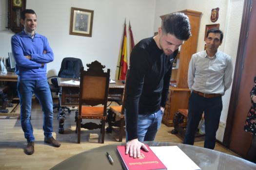 La plantilla de la Policía Municipal se amplía en tres policías más. El Ayuntamiento sacó hace unos meses el concurso oposición para cubrir varias de las plazas de compañeros jubilados. En concreto, tres nuevos puesto de trabajo. Con el inicio del año, Tomás Castellanos comenzó a trabajar como policía local en Almagro. Castellanos ya era policía en Membrilla. Los otros dos compañeros, que también aprobaron la oposición, primero deben formarse como parte de los Cuerpos de Seguridad del Estado. Hoy, José Ramón Lara Dueñas, 38 años y natural de Ciudad Real, y Diego Pérez Mota, 27 años y natural de Argamasilla de Calatrava, han tomado posesión. El alcalde Daniel Reina ha presidido el acto que ha tenido lugar en el despacho de la Alcaldía.