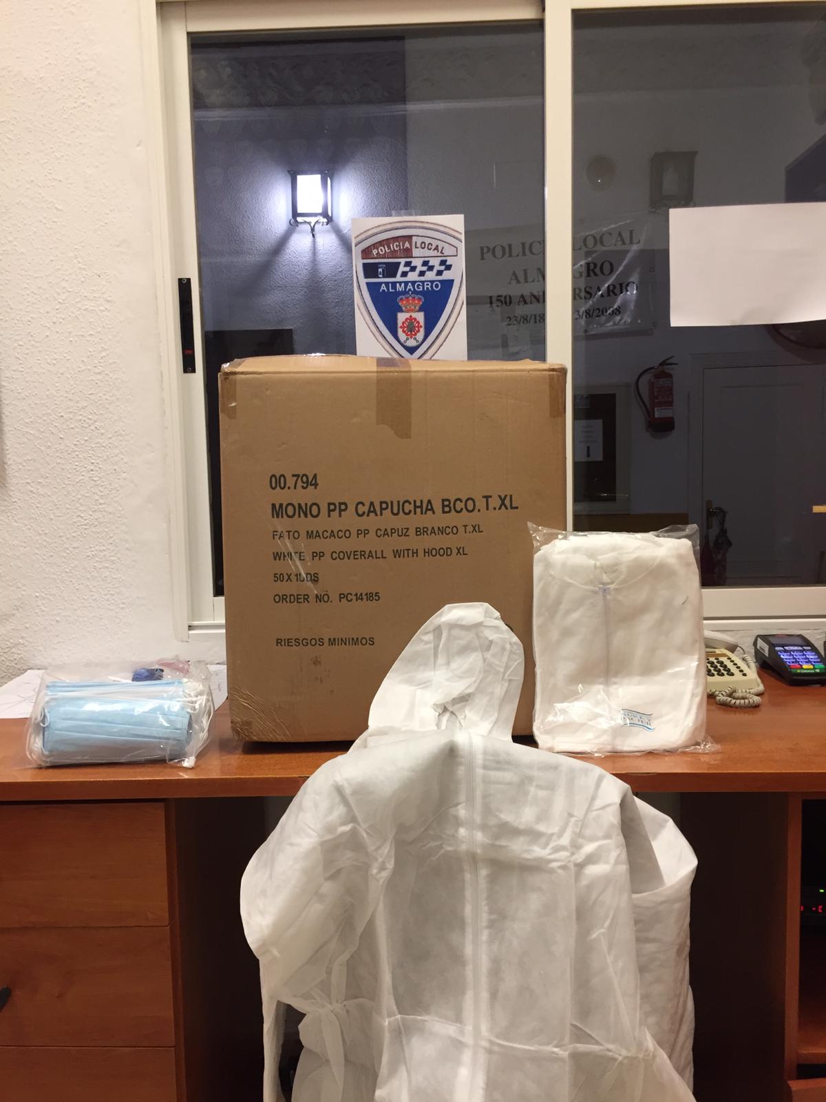 El Ayuntamiento agradece la entrega de material por empresas y profesionales de Almagro Hace unos días, el Consistorio pidió la colaboración de los vecinos para poder reunir mascarillas y todo tipo de material que pueda servir para proteger a los trabajadores municipales que atienden diferentes servicios fundamentales a pie de calle en esta situación extraordinaria de crisis sanitaria. El Ayuntamiento ha recibido guantes, toallas desechables, zapatillas desechables y monos de protección.