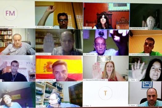 El Ayuntamiento de Almagro ha celebrado este jueves el primer pleno telemático como medida excepcional derivado por la pandemia del COVID-19 y el más largo desde que se retransmiten en directo por Onda Almagro. El alcalde, Daniel Reina, de baja médica por coronavirus, ha sido el primero en tomar la palabra en este pleno en el que cada concejal se ha conectado a la plataforma Webex desde sus casas. Reina ha dado aliento a los enfermos, haciendo hincapié en los han pasado y están pasando la enfermedad solos en los centros sanitarios. También ha tenido un recuerdo especial para los fallecidos y sus familias. Por todo ello, el Pleno ha comenzado con un minuto de silencio en su memoria.