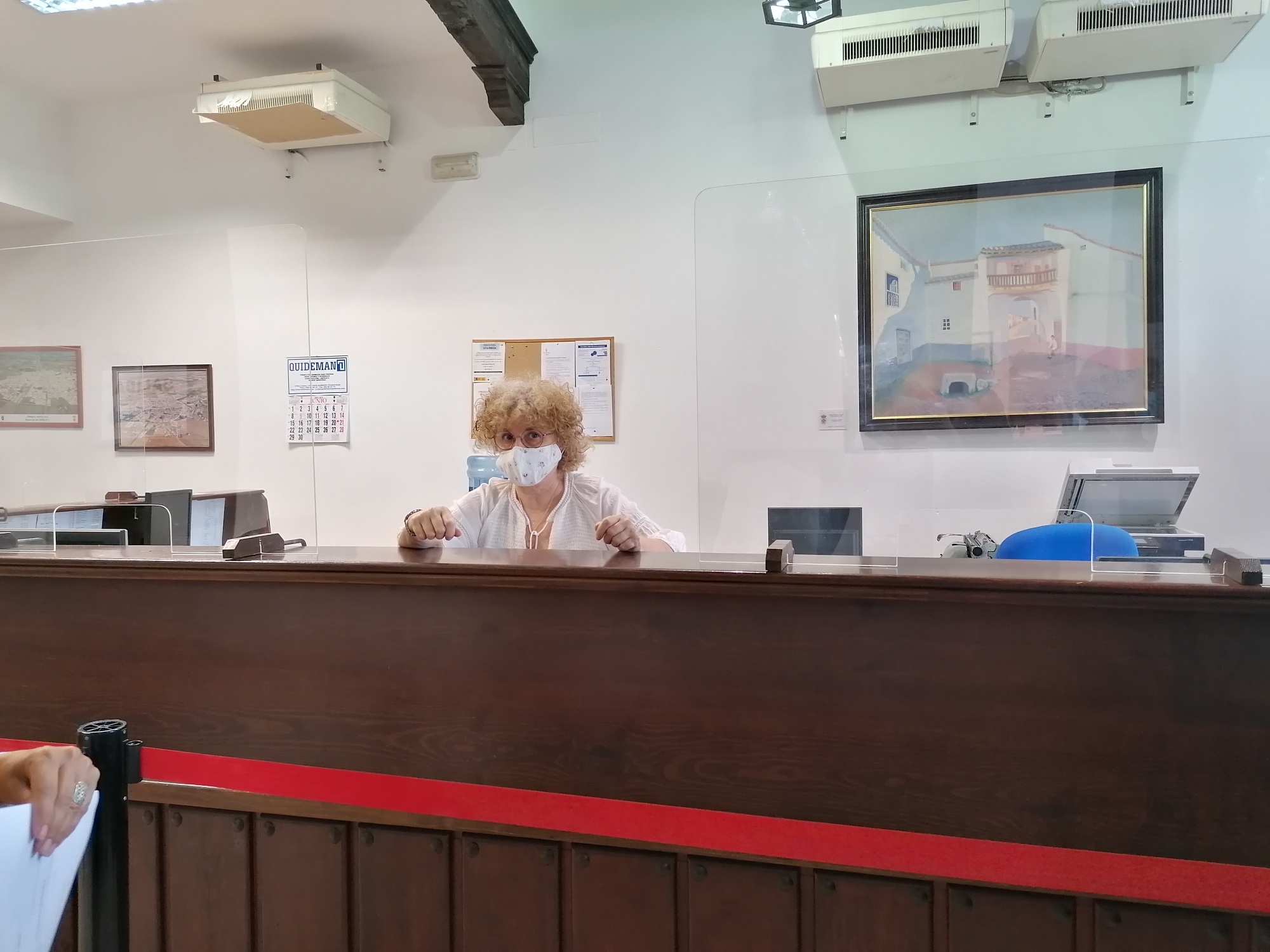 Ante esta situación extraordinaria, la concejal de Personal, Marián Ureña, explica que el Ayuntamiento se ha reorganizado para cumplir con la normativa vigente de seguridad en el trabajo en relación al COVID.-19. De esta manera, se han instalado mamparas de metacrilato en todos los puestos y despachos de atención al público. Todas las personas que acceden al edificio municipal deben llevar mascarillas y desinfectarse las manos con gel hidroalcohólico. Además, se ha marcado en el suelo o colocado una cinta para cumplir con la distancia de seguridad.