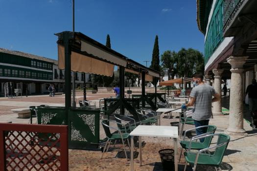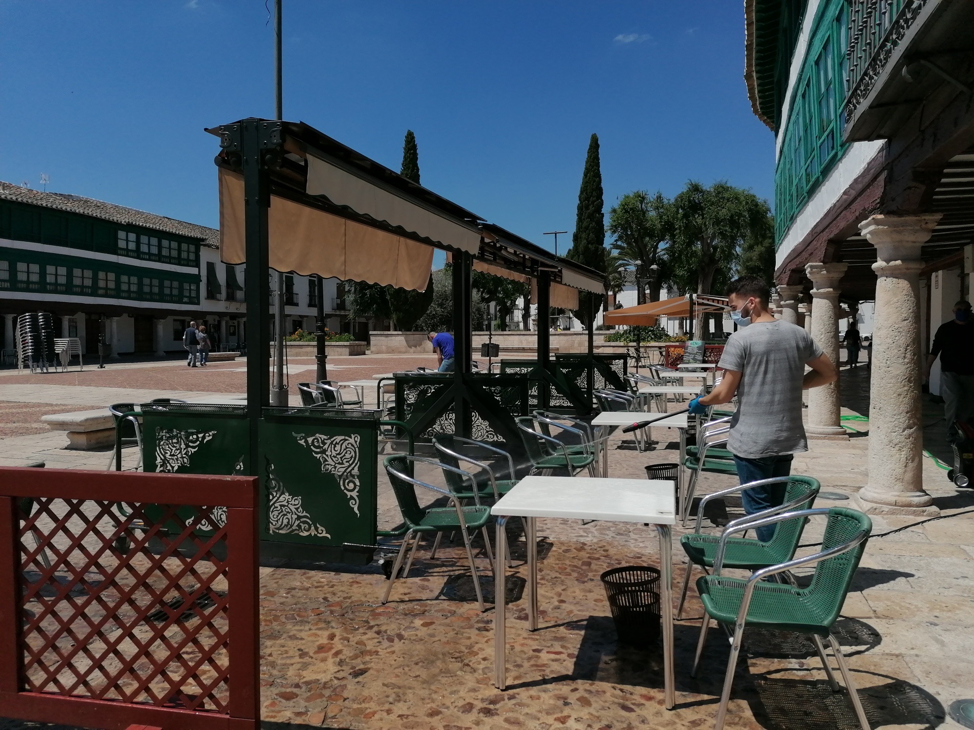 El inicio de la fase 1 en Almagro ha empezado con buen tiempo y con más movimiento en sus calles. A primera hora de la mañana, algunos de los bares de la Plaza Mayor y de la ronda han servido sus primeros cafés tras dos meses de cierre por el COVID19. Poco después, las persianas del pequeño comercio han comenzado a abrirse. Un 90 por ciento de las tiendas de Almagro han abierto sus locales, con todas las medidas de seguridad pertinentes y con las ganas y entusiasmo de comenzar la primera fase hacia la nueva normalidad. También ha recuperado su actividad el quiosco de periódicos y las dos administraciones de lotería, aunque solo dos sorteos La primitiva y el Euromillones se han reanudado esta semana. La próxima será El Gordo y la Bonoloto.
