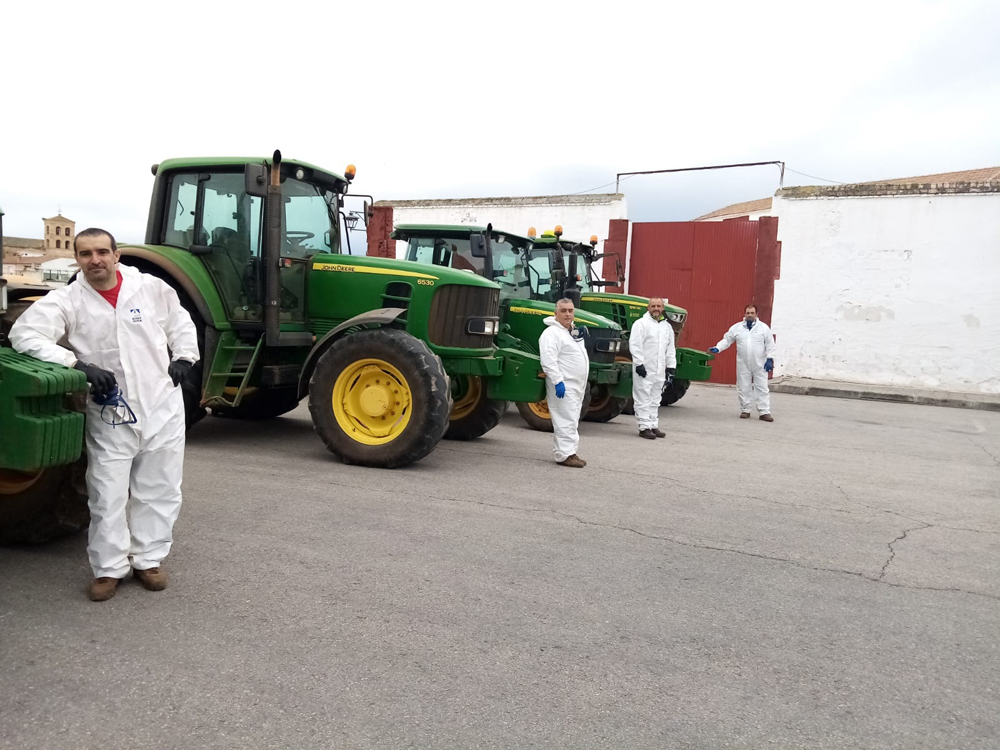 Los agricultores volvieron a subirse a sus tractores, pero no por el campo. pasadas las diez de la noche de este pasado domingo, recorrieron las calles de Almagro y sus polígonos con sus tolvas llenas de hipoclorito. La tarea se alargó, como se ha hecho habitual en estos dos últimos meses, durante cinco horas. El Ayuntamiento ha querido agradecer, una vez más, la colaboración desinteresada del colectivo de agricultores, que representan los cuatro agricultores que han participado en las distintas desinfecciones globales en Almagro.