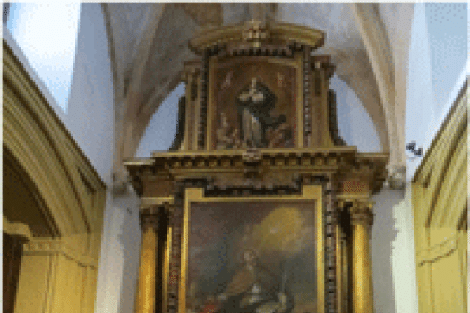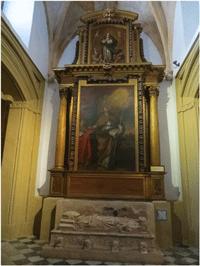 Tiene un pequeño retablo y en la cartela (de la basa de la columna de la parte izquierda del retablo) se lee: San Gregorio Magno, Papa. Óleo sobre lienzo 1697(quiere decir 1679)-Pedro de Villafranca y Malagón Almagroc.1615 Madrid 1684. 1º fotografía: Miguel Fuentes ( Zaragoza)