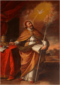 El cuadro con la imagen del Papa San Gregorio, obra del almagreño Pedro de Villafranca y Malagón, en el Real Monasterio de Santa María de Guadalupe