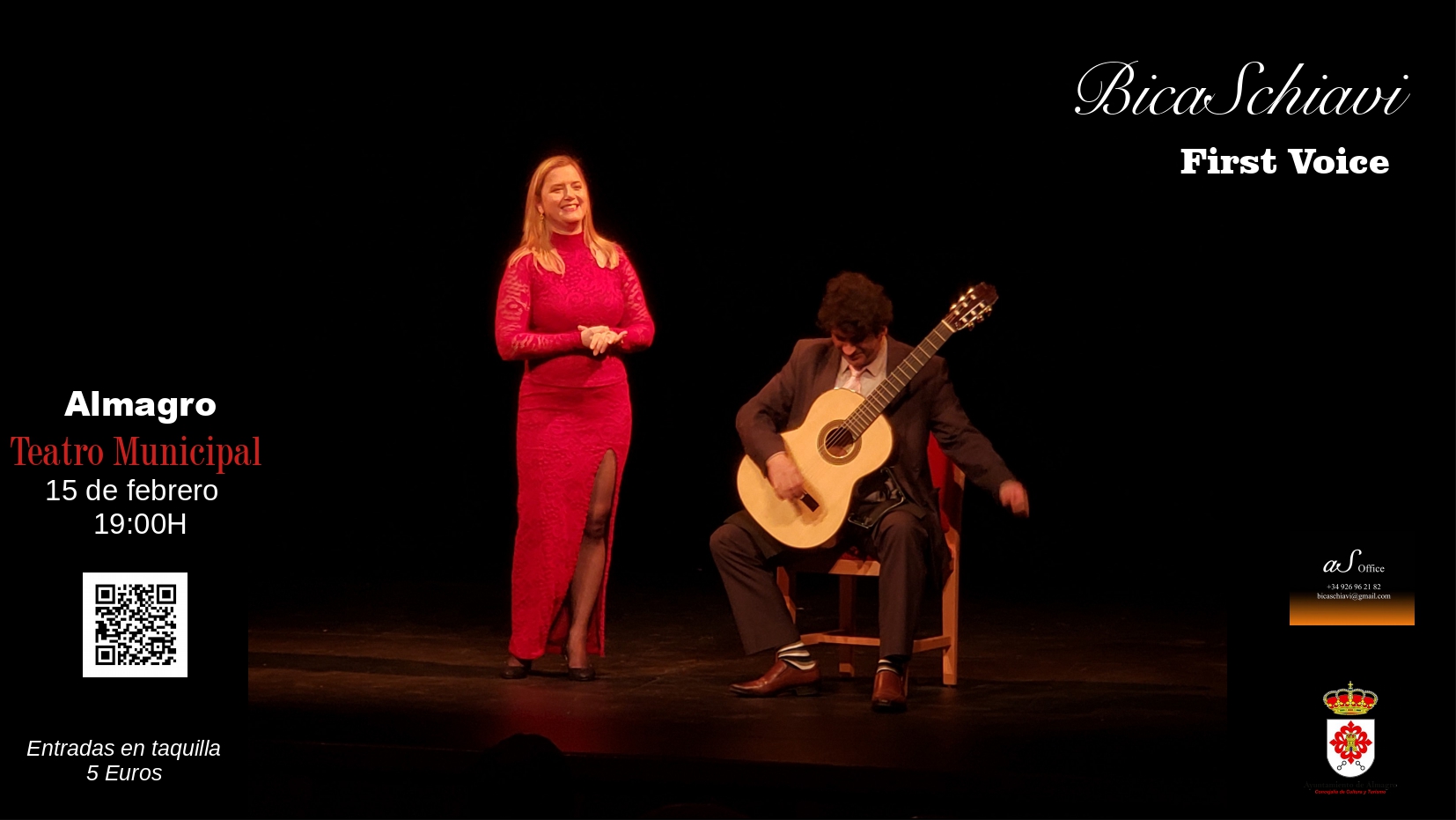 El Duo BicaSchiavi conformado por el guitarrista clásico Carlos Bica y la Soprano Rosana Schiavi vuelve a Almagro este sábado 15 de febrero en el Teatro Municipal de Almagro. El concierto First Voice desplegará una selección de obras de Fernando Sor, Garcia Lorca, Villa-Lobos, Piazzolla, Giuliani y otros, música del siglo XIX al XX que fue caracterizado por la definitiva consolidación de la guitarra y soprano. No es una casualidad, que estos tres autores se encuentren entre los compositores más activos en la creación de un repertorio específico para la guitarra moderna y voz.