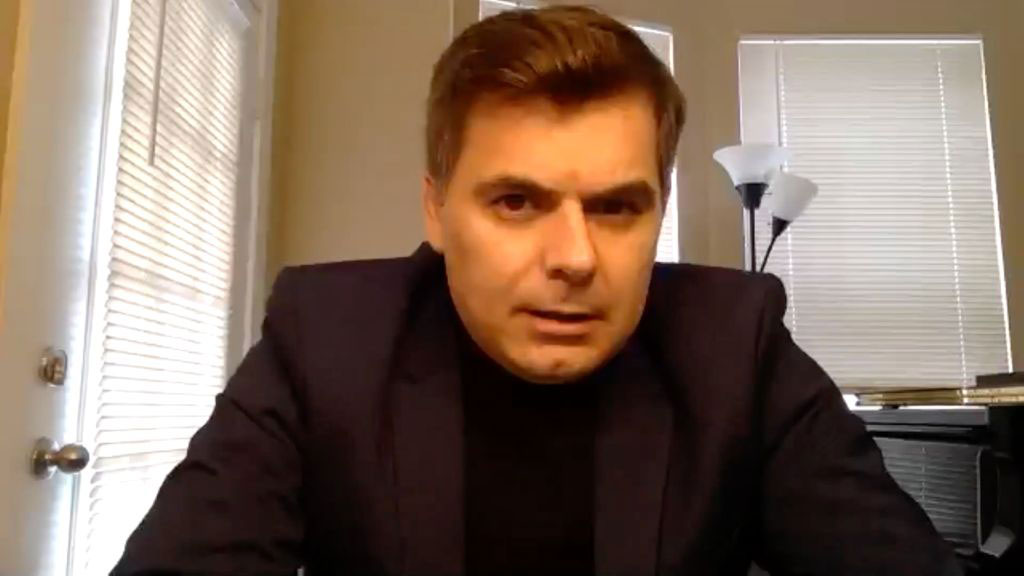 En algunos momentos de su conferencia musical telemática apoyó sus explicaciones tocando el piano en directo