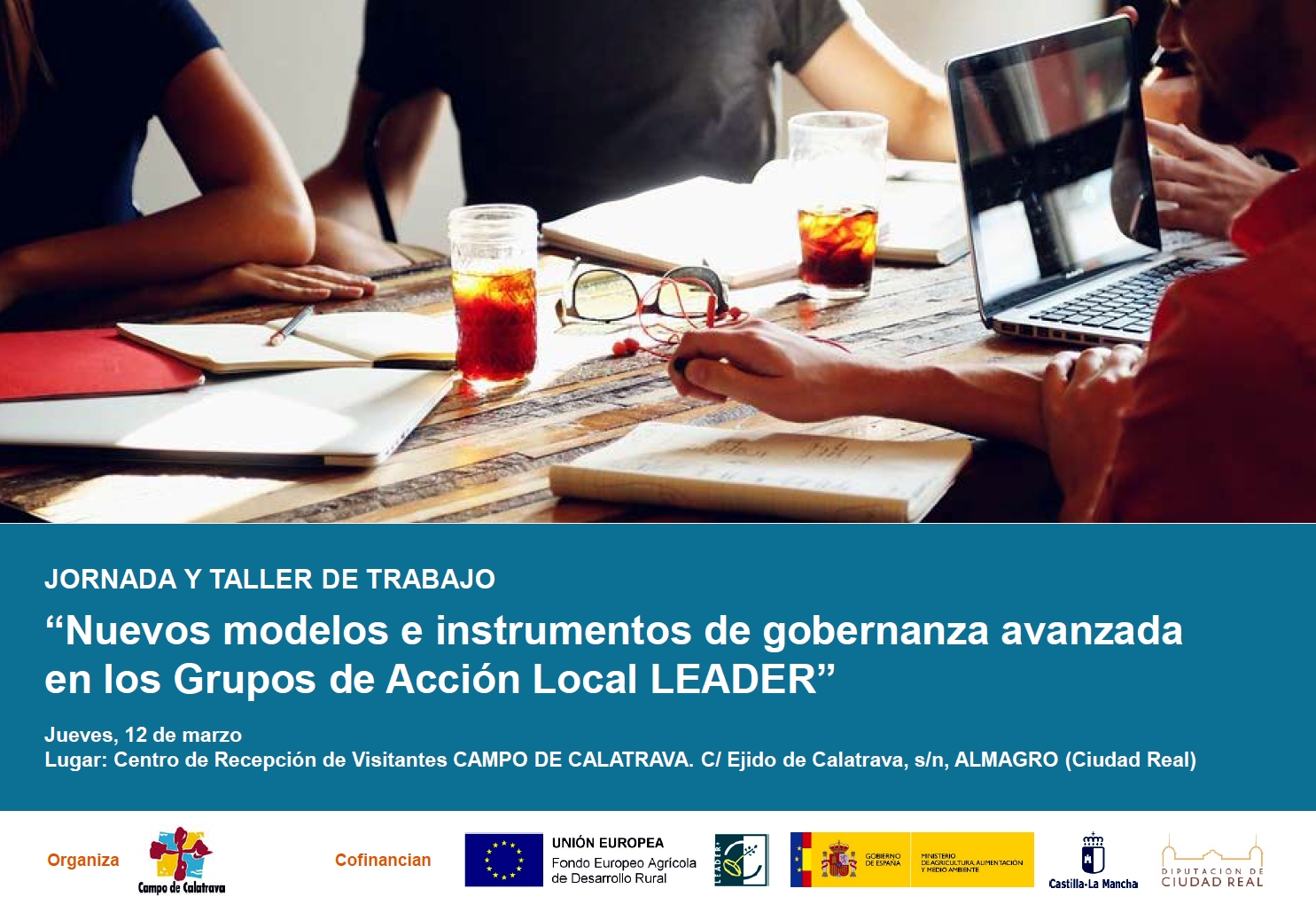 La Asociación para el Desarrollo del Campo de Calatrava ha cancelado la jornada y taller de Trabajo sobre “Nuevos modelos e instrumentos de gobernanza avanzada en los Grupos de Acción Local LEADER”, prevista para el jueves 12 de marzo, en su sede comarcal, en el Centro de Recepción de Visitantes de Almagro.