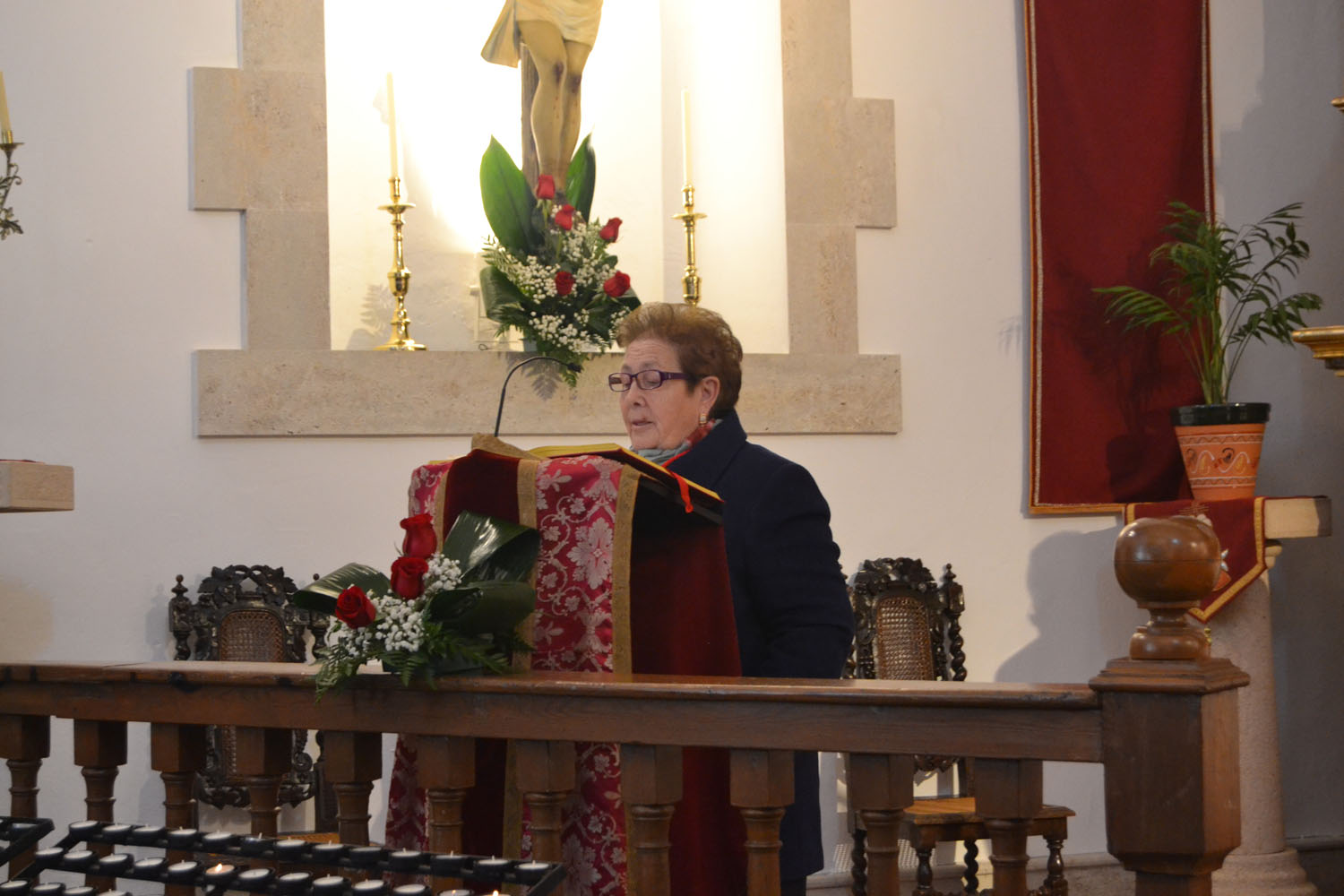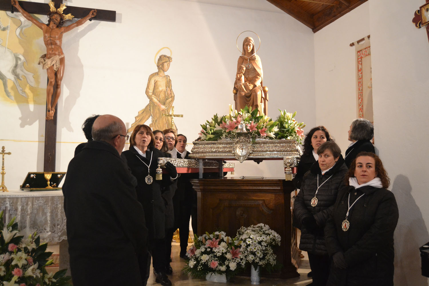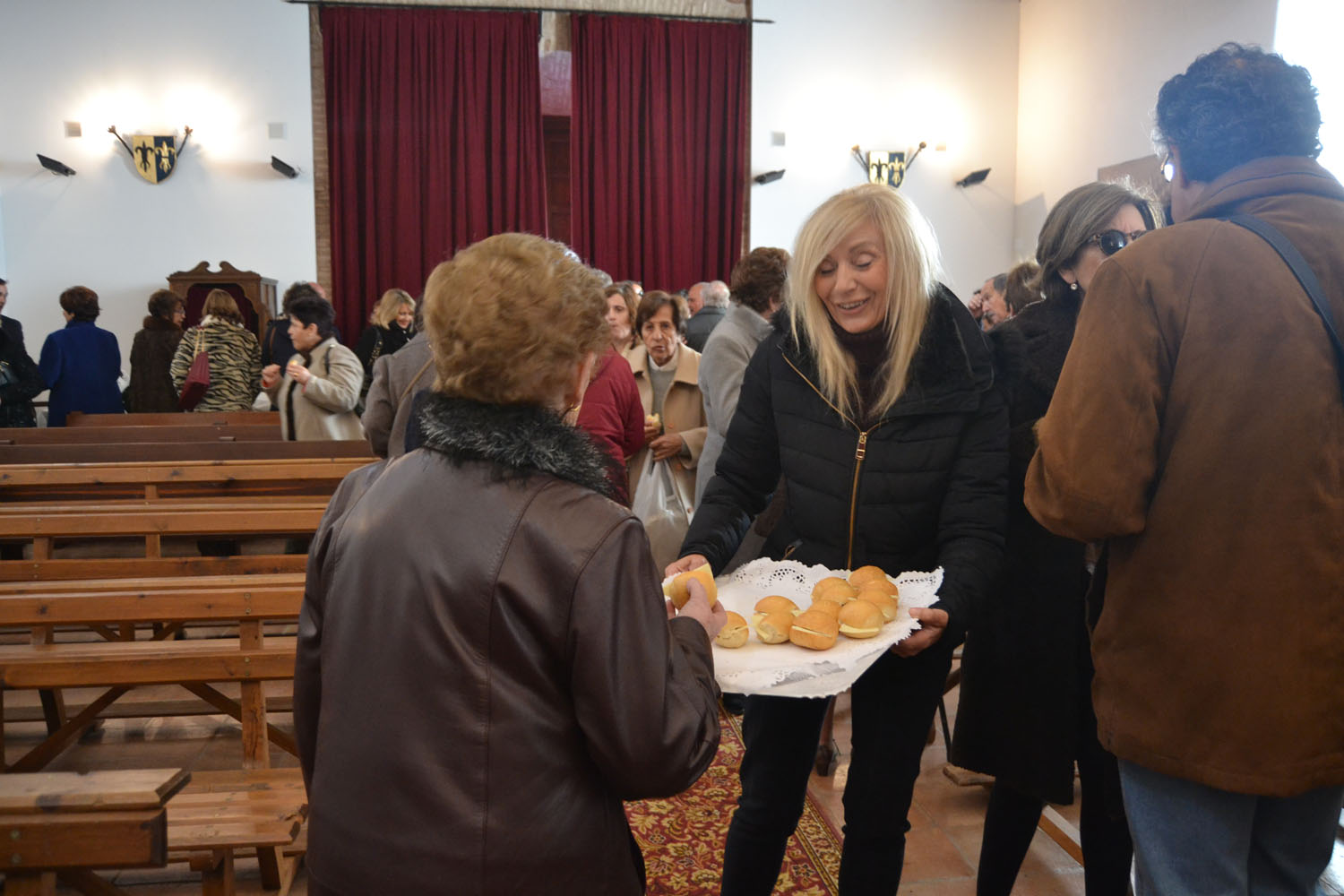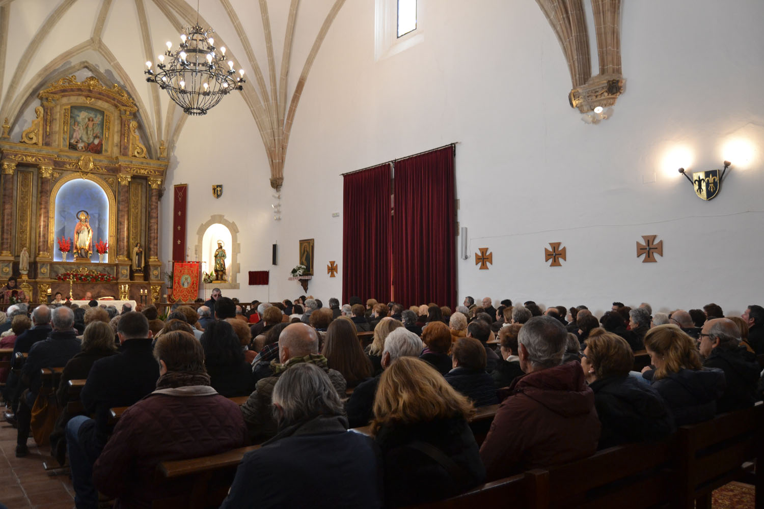 Hoy, los Santos Viejos continúan en la iglesia de San Blas. Como es también tradición, a las 11:00 horas se ha celebrado la misa en honor al patrón de las enfermedades de la garganta y de los otorrinolaringólogos. Ha sido algo más especial que otros años. La presidenta de la Hermandad, Josefa Bautista, ha presentado el retablo que ahora luce detrás de su altar y que antes no tenía. Comenzó a instalarse hace un par de meses y finalizó a mediados de este pasado enero. Bautista ha agradecido la colaboración de todas las personas que han hecho posible que este nuevo retablo esté en Almagro y en la iglesia de San Blas. El retablo ha sido cedido por la Hermandad del Cristo del Consuelo de Torralba de Calatrava. Su presidente, Juan Carlos Fernández de Mera, ha descubierto la placa conmemorativa de agradecimiento, después de la bendición por parte del párroco de Almagro, Ángel Daniel de Toro. El alcalde Daniel Reina y el primer teniente de alcalde, Jesús Santacruz han asistido al acto.