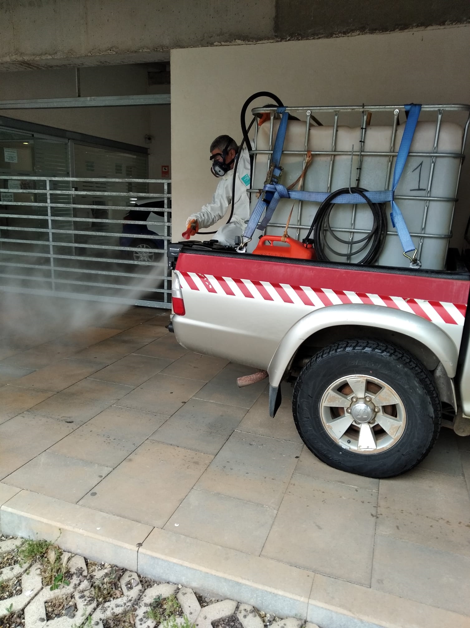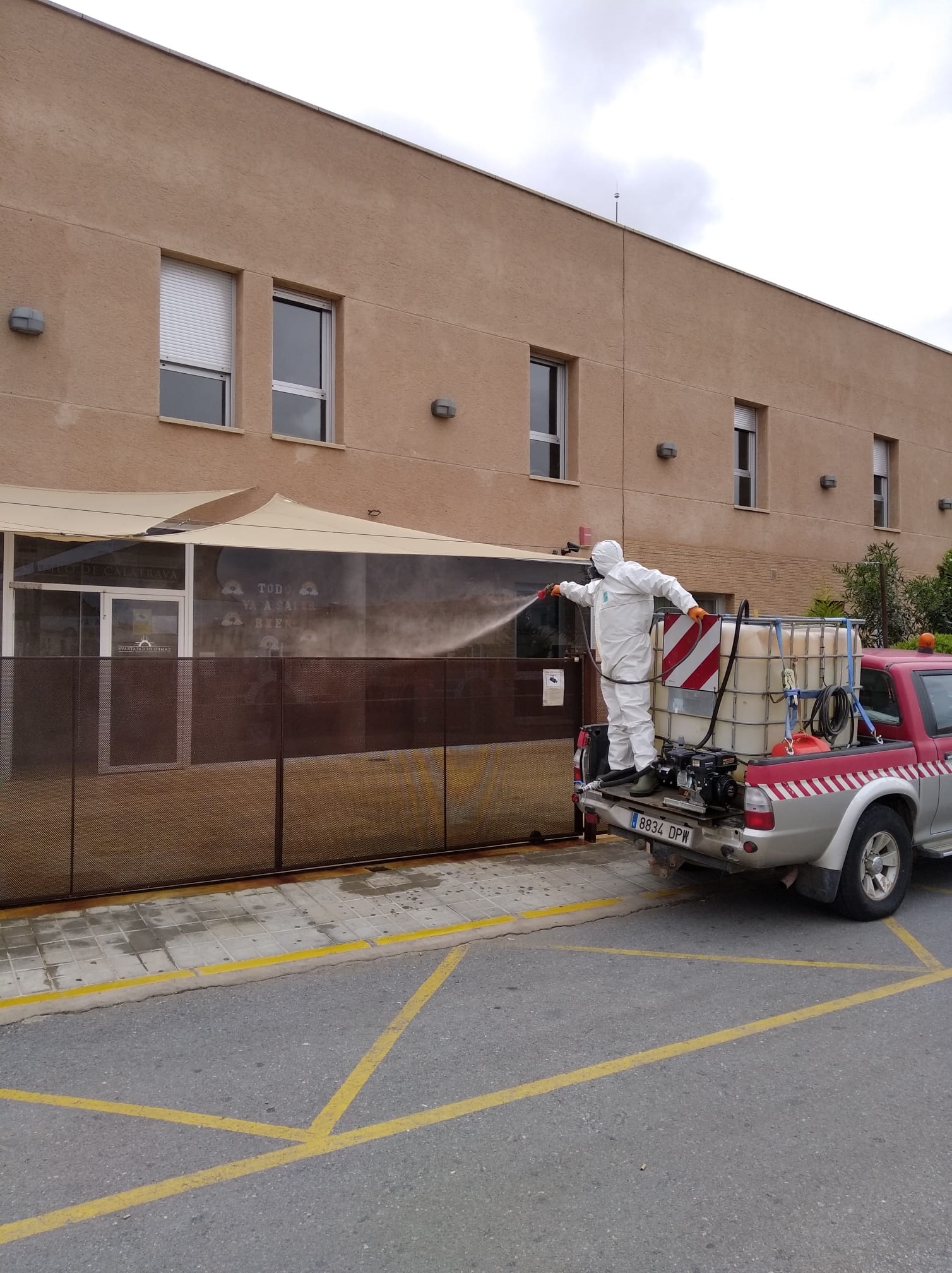 A estos trabajos de higiene y protección contra el COVID-19 se ha sumado el servicio de Obras de la Diputación Provincial. Cada tres días, antes cada cuatro, desde hace un mes, se traslada a la ciudad encajera para pulverizar con hipoclorito los exteriores del centro de salud, residencia de mayores y espacios exteriores más concurridos del municipio tanto públicos como privados, comercios, farmacias, etc.