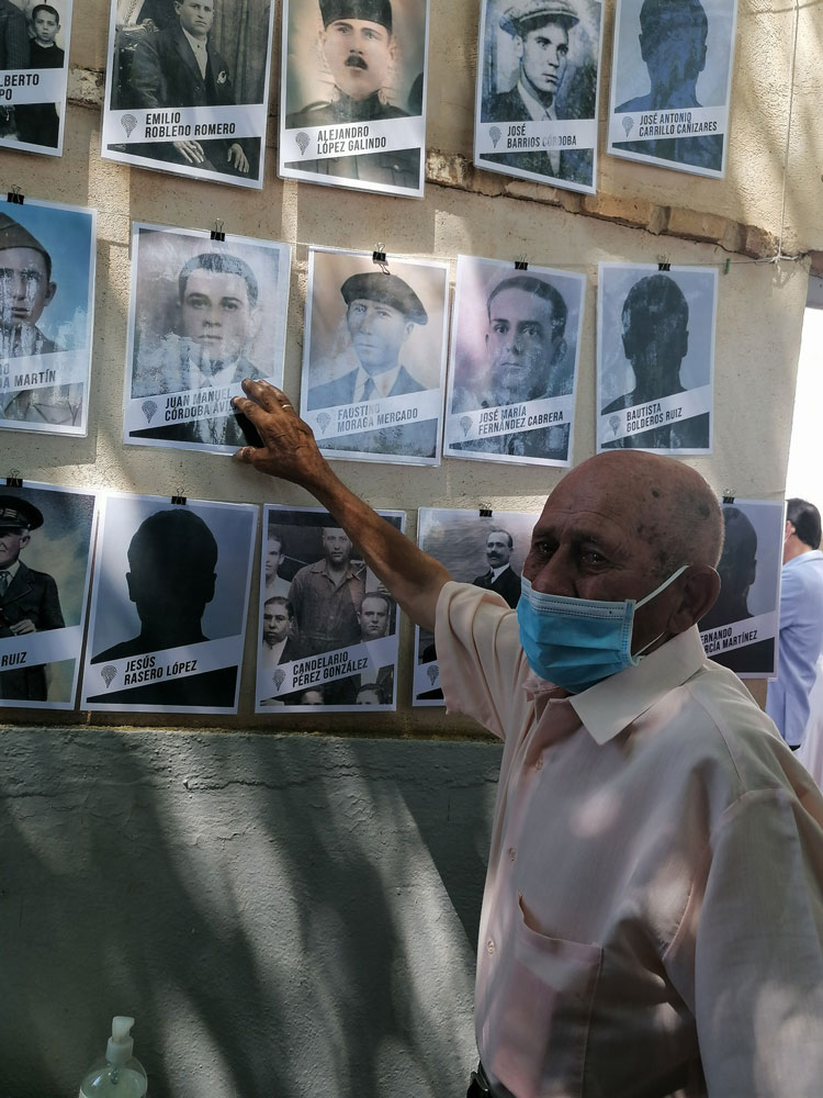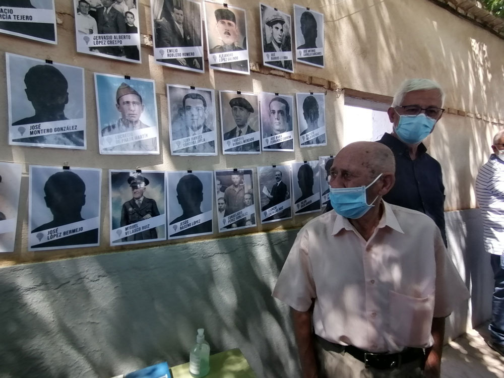También ha hablado Jorge Moreno, autor del libro Todas las fosas comunes de la provincia de Ciudad Real y director de Mapas de Memoria que ha compartido algunas de las historias de estas familias que, en algunos casos, acaban de saber que pondrán recuperar a sus padres, abuelos tíos… y darles una sepultura digna al lado de los suyos. Ha explicado también cómo día a día, al iniciarse la exhumación, fueron encontrando a familiares de las víctimas. En la puerta de la fosa, comenzaron solo con el rostro de cuatro víctimas identificado por fotografías que guardaban sus familias. El resto era siluetas con los nombres de los represaliados. Hoy, martes, de solo cuatro de ellos: José Antonio Carrillo Cañizares, José López Bermejo, Fernando García Martínez y José Montero González aún no se les conoce su cara. No han encontrado a algún familiar suyo.