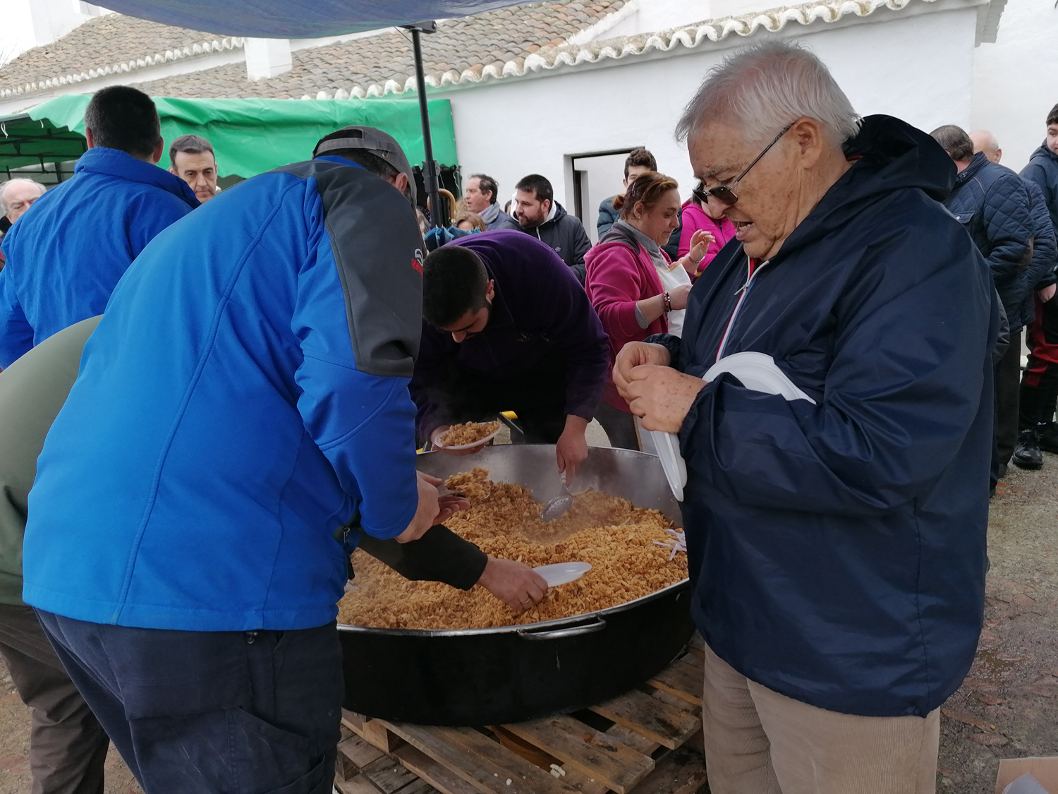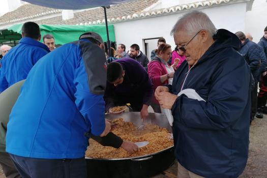 El tiempo desapacible no impidió que muchos almagreños se dieran cita en la explanada de la ermita para compartir unas migas