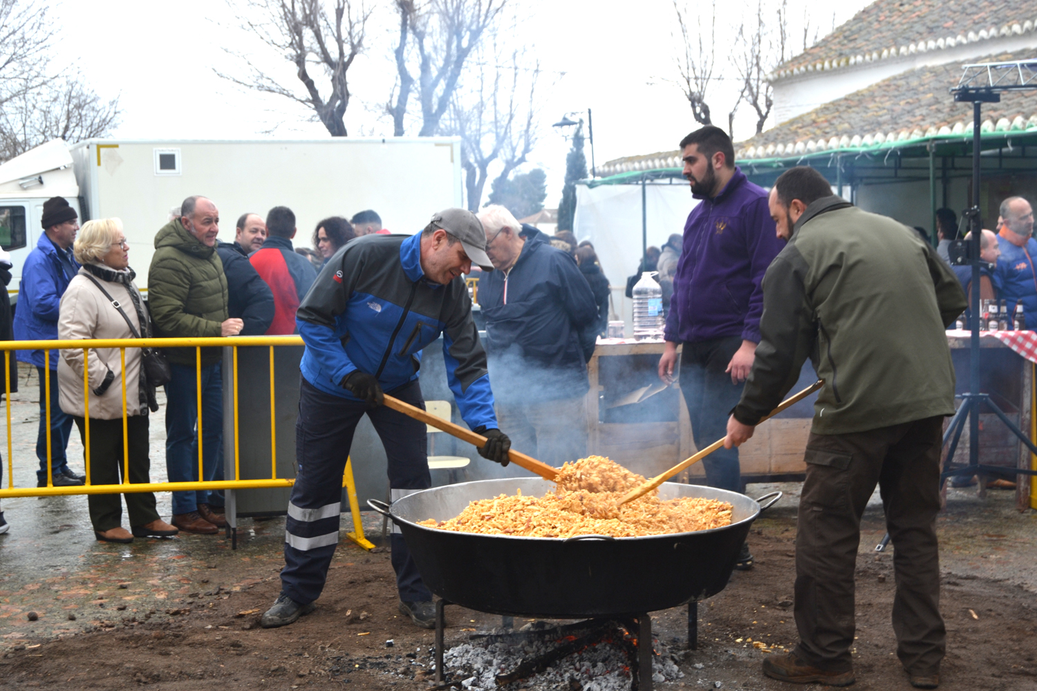 Con un tiempo más desapacible de lo habitual para el fin de semana dedicado a San Ildefonso y la Virgen de la Paz, los almagreños han celebrado la segunda de las citas con los santos viejos. La lluvia fue protagonista durante toda el sábado. Pero no impidió que muchos almagreños se dieran cita en la explanada de la conocida como ermita del Santo cuando la lluvia no era intensa o incluso durante las horas en las que no llovió. La Hermandad preparó con el mismo cariño las migas que degustaron los fieles al Santo.
