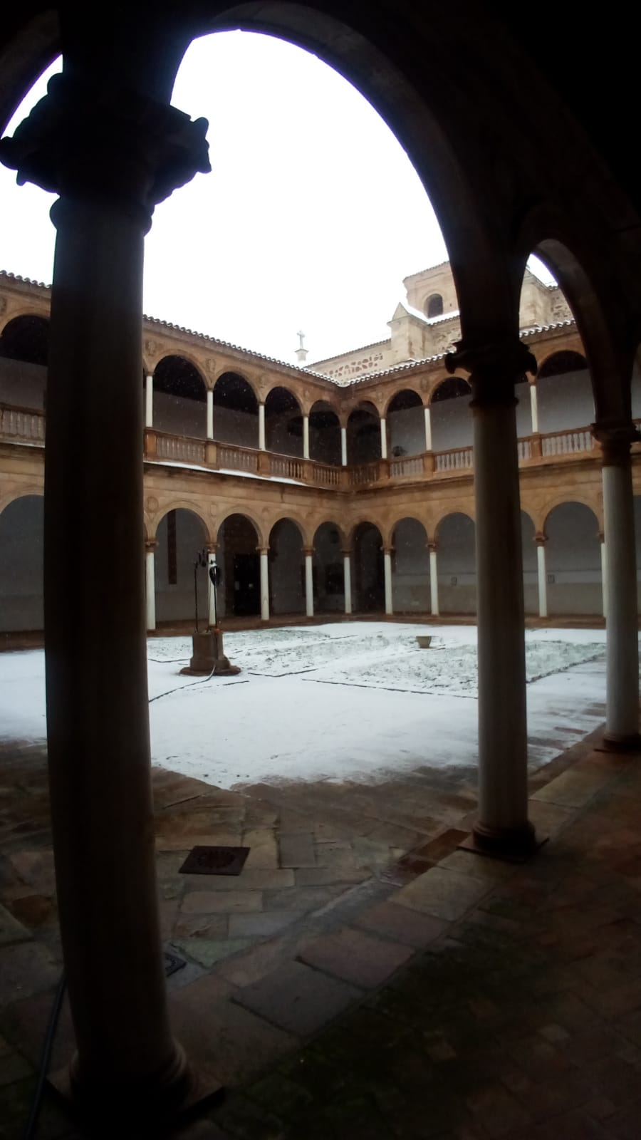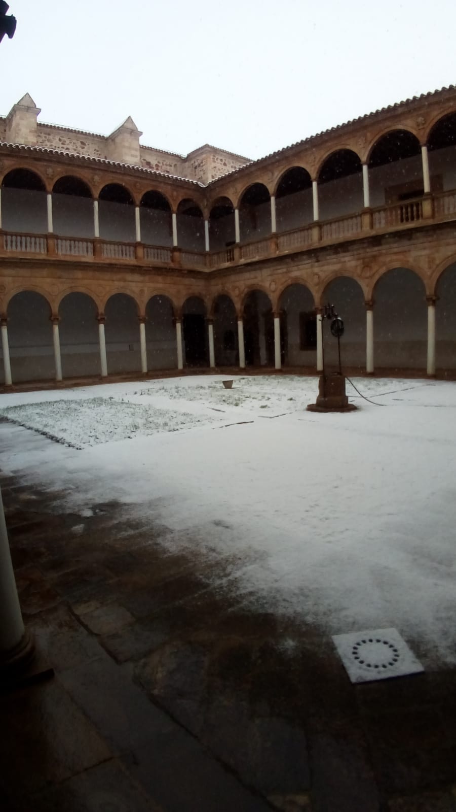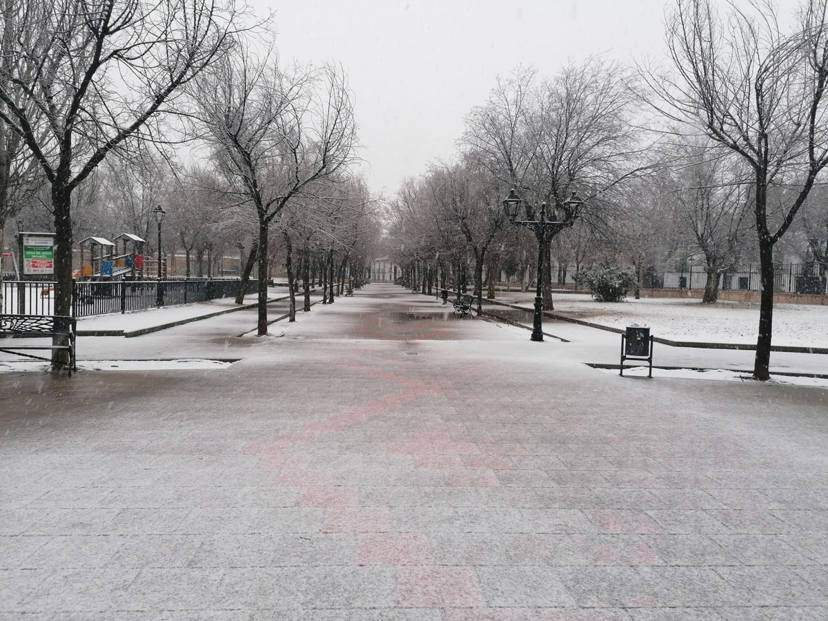 Desde primera hora de la mañana la nieve cae con fuerza en Almagro, una situación que se venía anunciando desde hace días. Según Catalina Berzal, meteoróloga de la Base de Helicópteros de Almagro, este temporal se alargará hasta mitad de la tarde y las temperaturas rondarán los cero grados. Es posible que la nieve vuelva a aparecer esta madrugada, al bajar la temperatura nocturna.