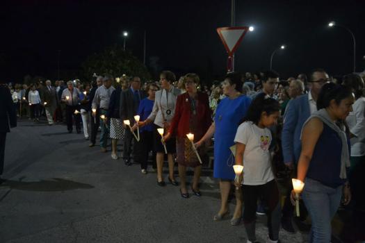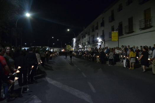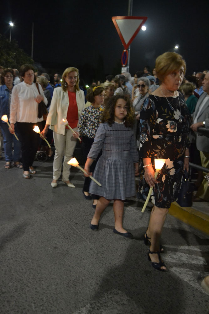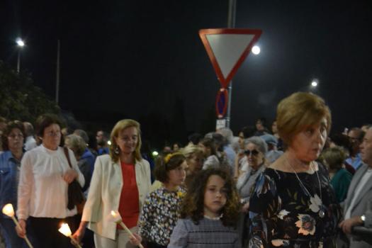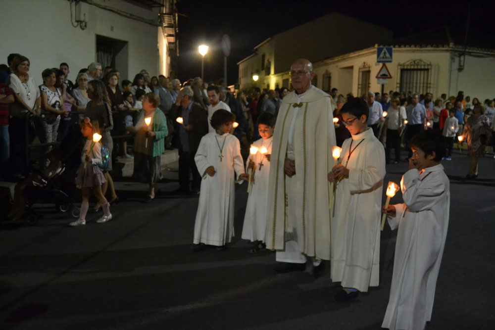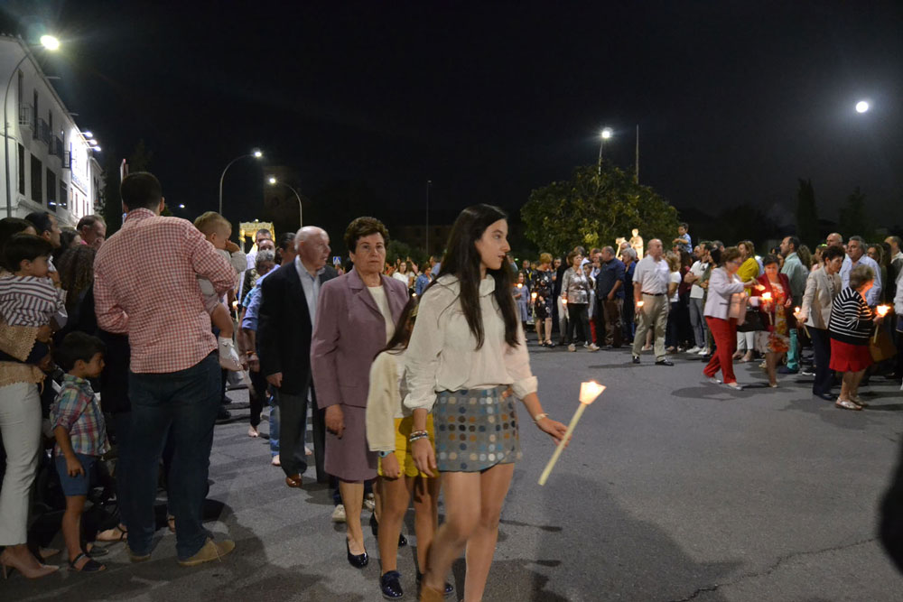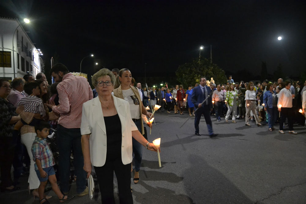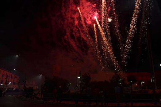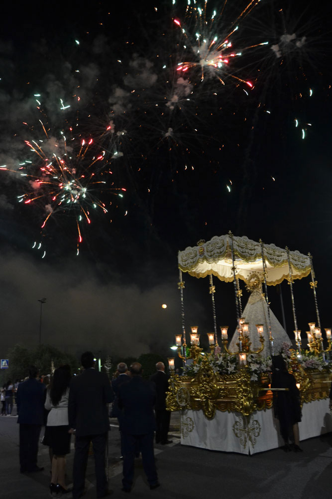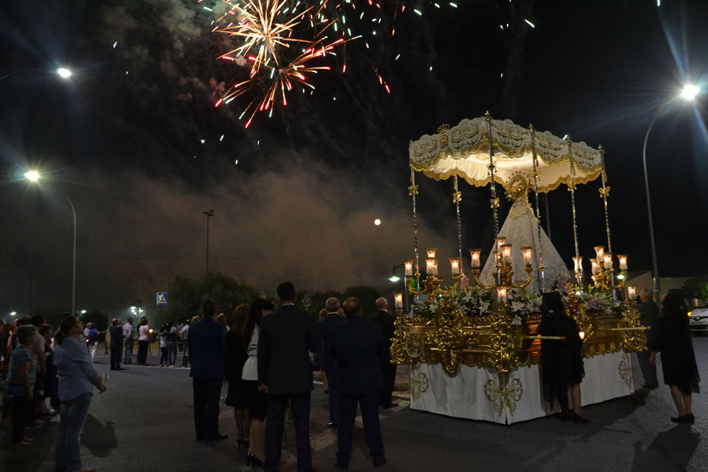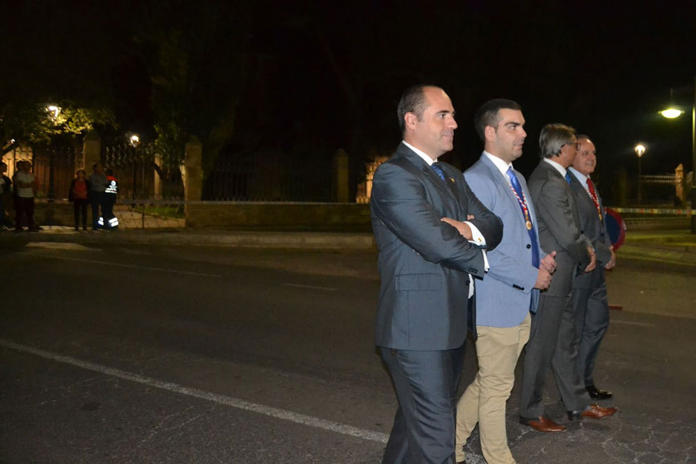 La procesión ha vuelto a su recorrido original. No se ha desviado al recinto ferial donde desde hace unos 15 años ha tenido lugar la traca y los fuegos artificiales de bienvenida. Esta noche, las luces de colores y el estruendo de los cohetes se ha escuchado más cerca de la ciudad. Ha vuelto a su lugar de origen, el Ejido de Calatrava o a las Calatravas como se conoce popularmente.