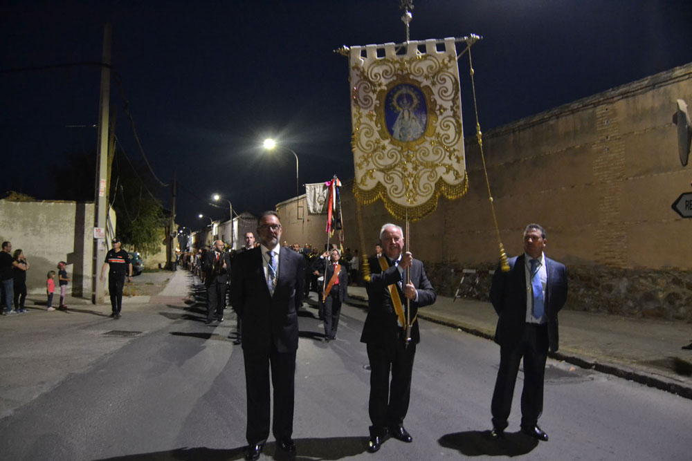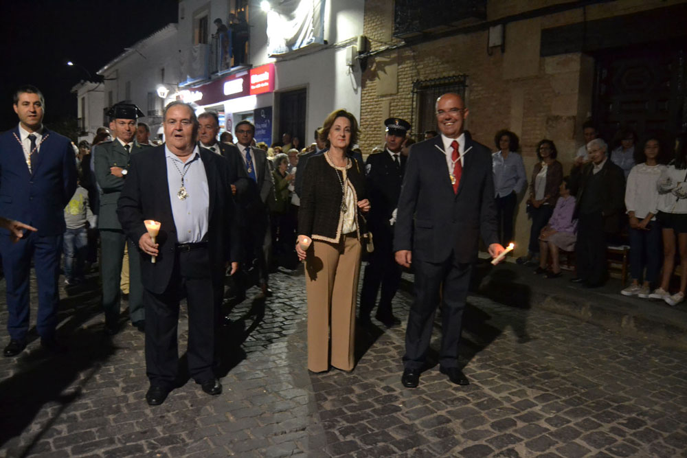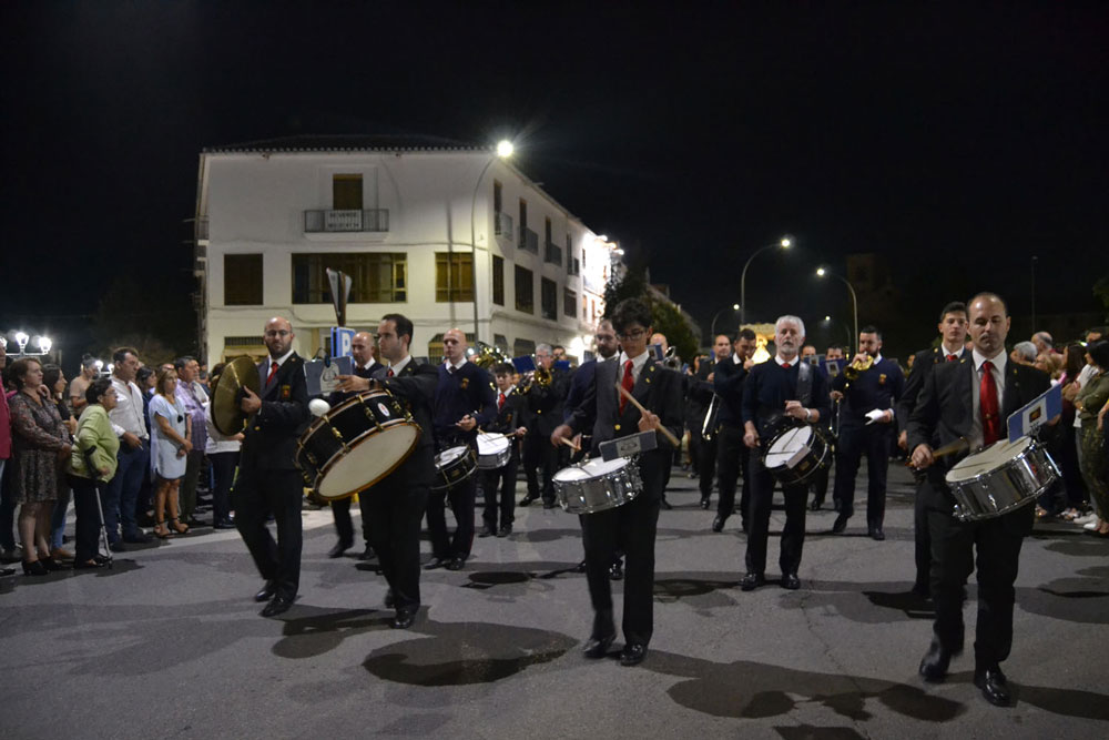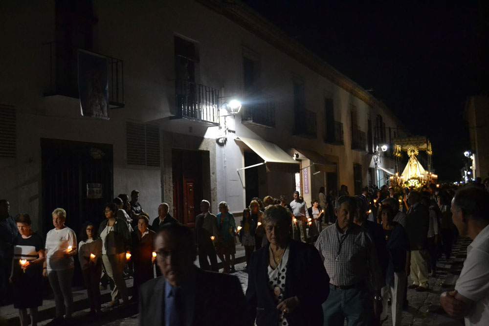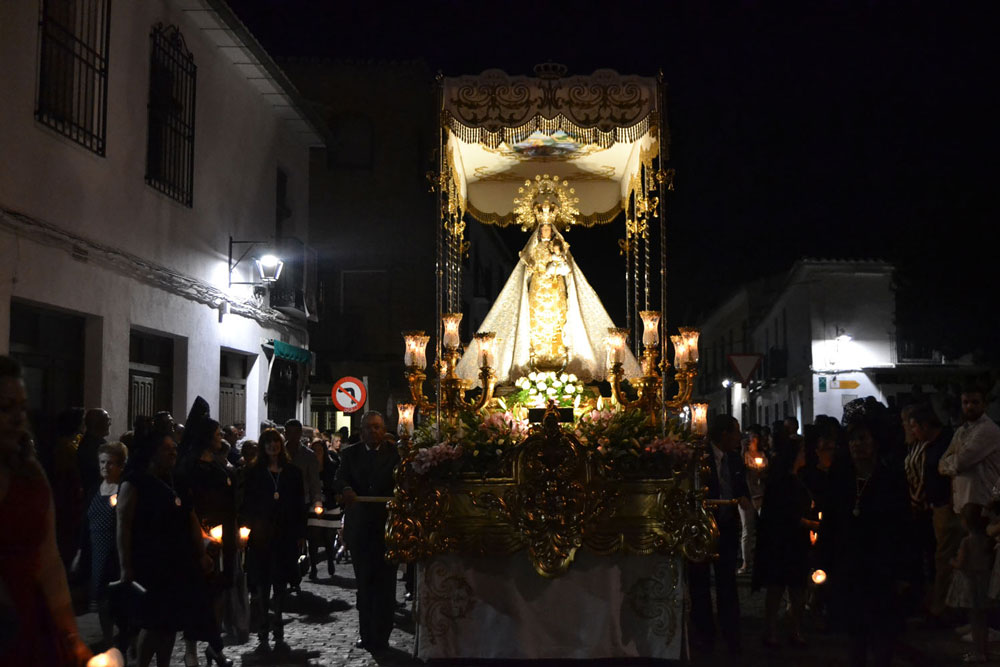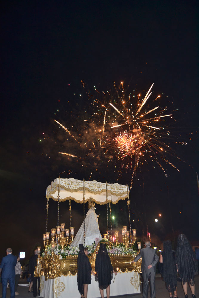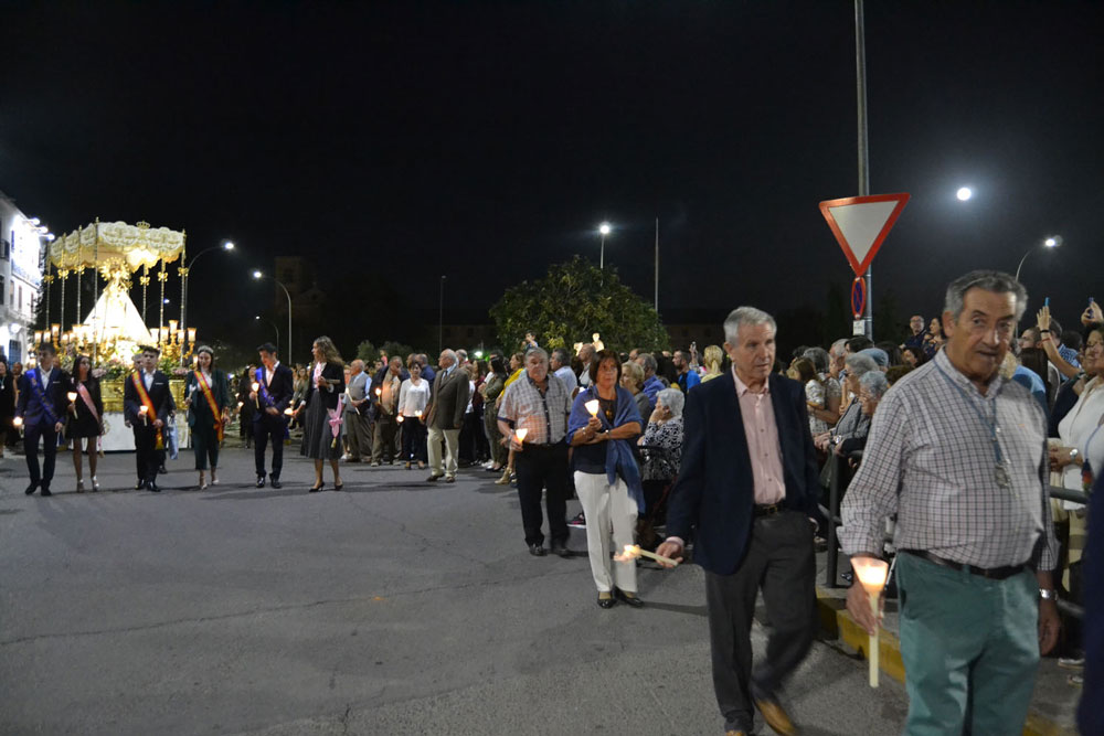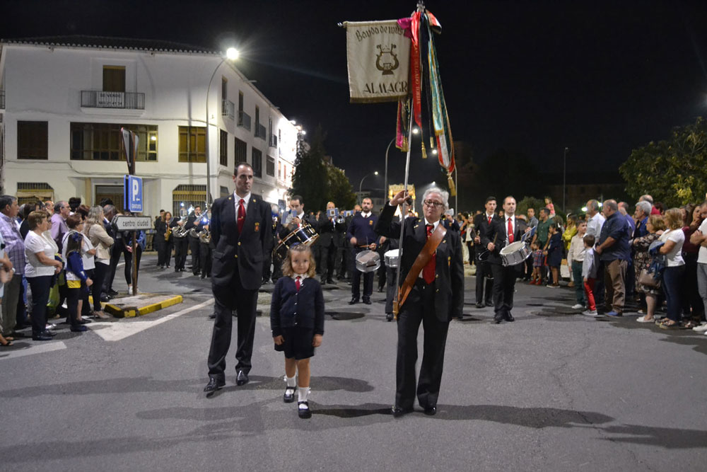 La procesión ha continuado en línea recta hasta Madre de Dios. Almagreños de todas las edades han alumbrado a su Virgen. También han asistido representantes de todas las hermandades de la ciudad. Cerrando la procesión, las autoridades civiles, Corporación Municipal y representantes de las Cuerpos de Seguridad del Estado. Una hora y veinte minutos más tarde, la Banda de Música de la ciudad ha interpretado el himno nacional mientras la carroza entraba en el templo. durante el recorrido, la agrupación musical ha interpretado La estrella sublime, Concha, Sevilla cofradiera, Aniversario Macareno, Triana de Esperanza, Jerusalem y Mater Mea.