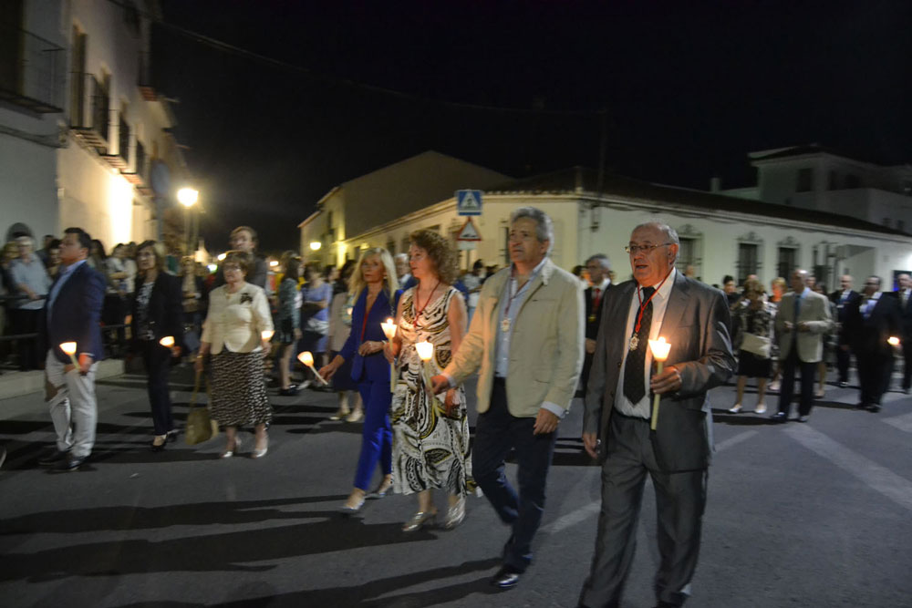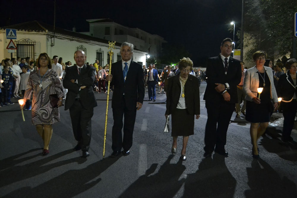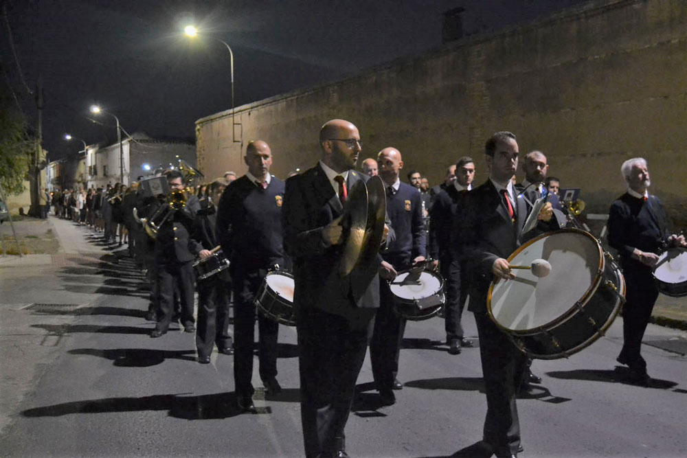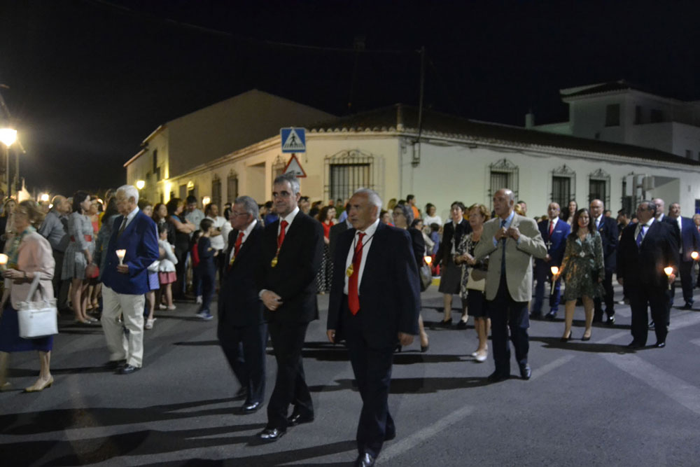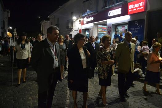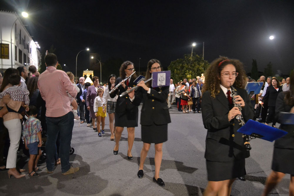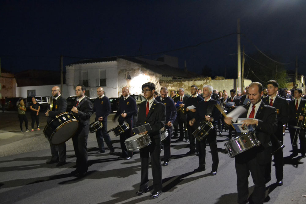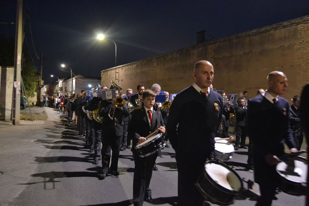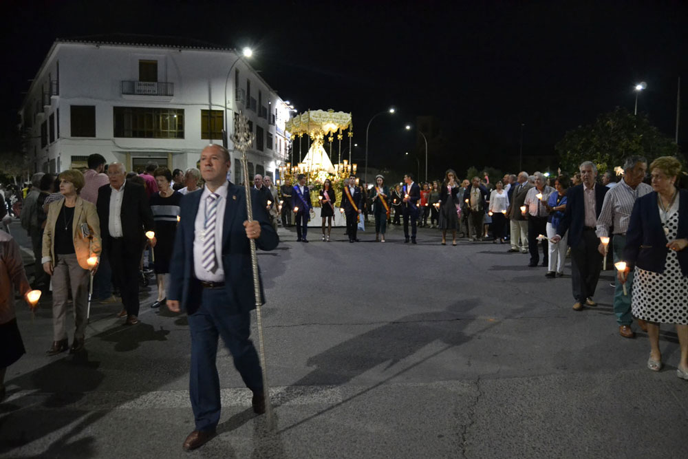 La procesión ha continuado en línea recta hasta Madre de Dios. Almagreños de todas las edades han alumbrado a su Virgen. También han asistido representantes de todas las hermandades de la ciudad. Cerrando la procesión, las autoridades civiles, Corporación Municipal y representantes de las Cuerpos de Seguridad del Estado. Una hora y veinte minutos más tarde, la Banda de Música de la ciudad ha interpretado el himno nacional mientras la carroza entraba en el templo. durante el recorrido, la agrupación musical ha interpretado La estrella sublime, Concha, Sevilla cofradiera, Aniversario Macareno, Triana de Esperanza, Jerusalem y Mater Mea.