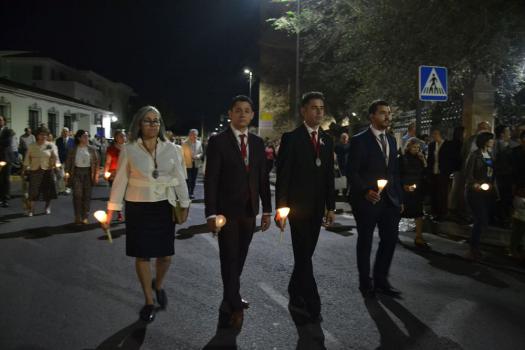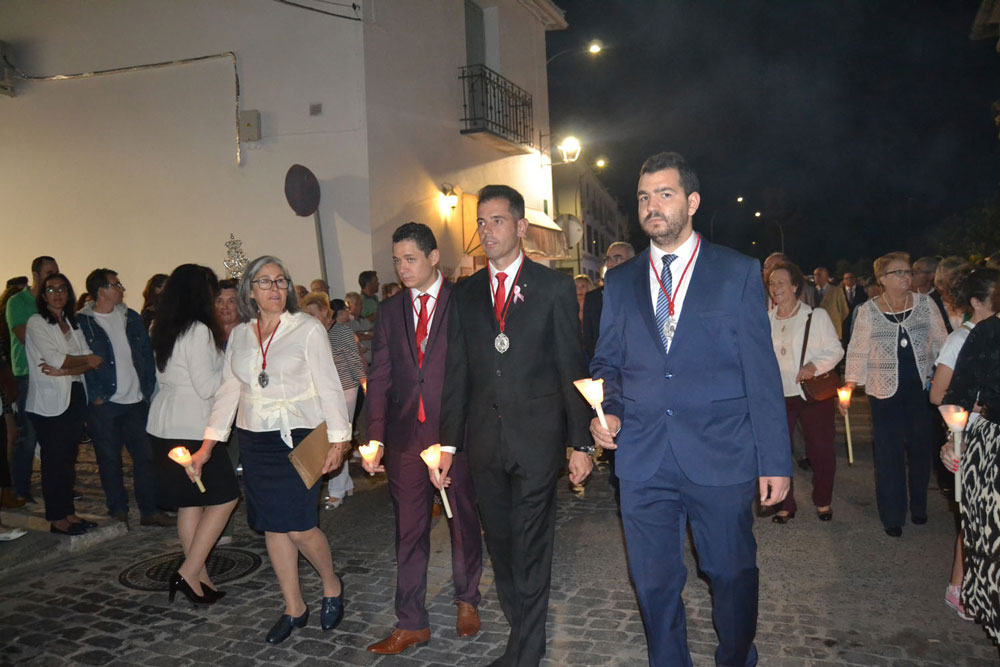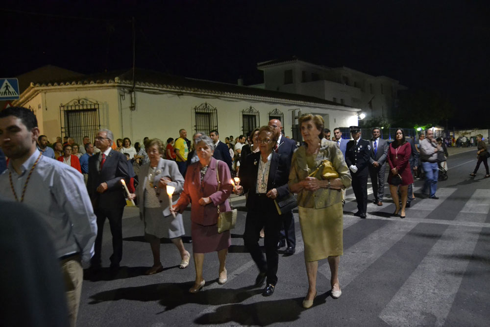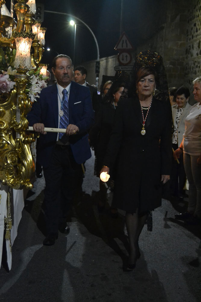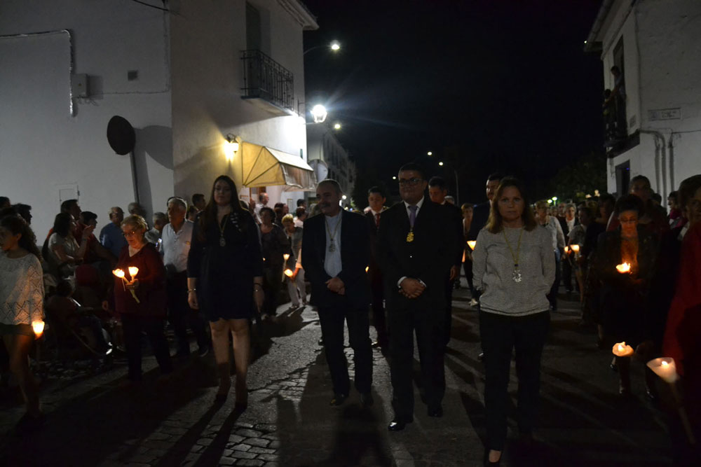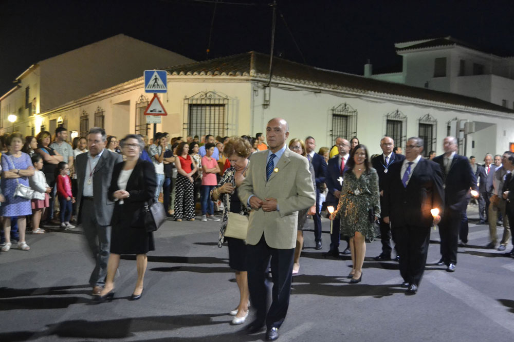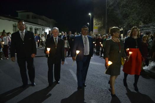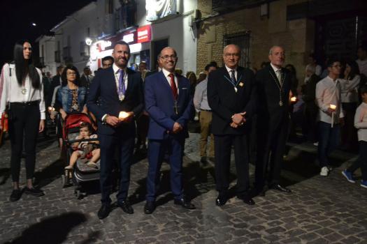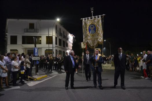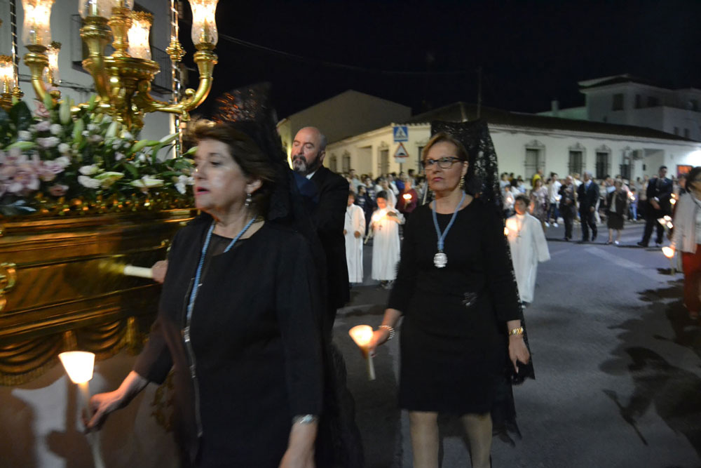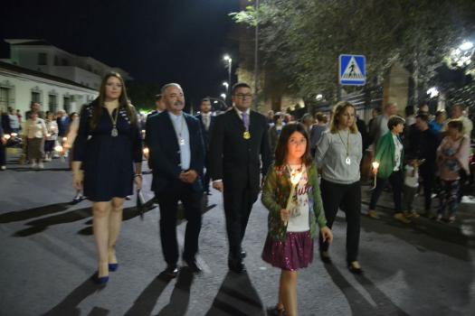 La procesión ha continuado en línea recta hasta Madre de Dios. Almagreños de todas las edades han alumbrado a su Virgen. También han asistido representantes de todas las hermandades de la ciudad. Cerrando la procesión, las autoridades civiles, Corporación Municipal y representantes de las Cuerpos de Seguridad del Estado. Una hora y veinte minutos más tarde, la Banda de Música de la ciudad ha interpretado el himno nacional mientras la carroza entraba en el templo. durante el recorrido, la agrupación musical ha interpretado La estrella sublime, Concha, Sevilla cofradiera, Aniversario Macareno, Triana de Esperanza, Jerusalem y Mater Mea.