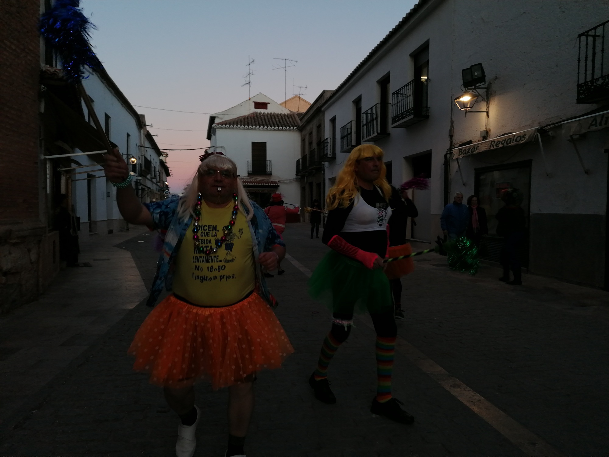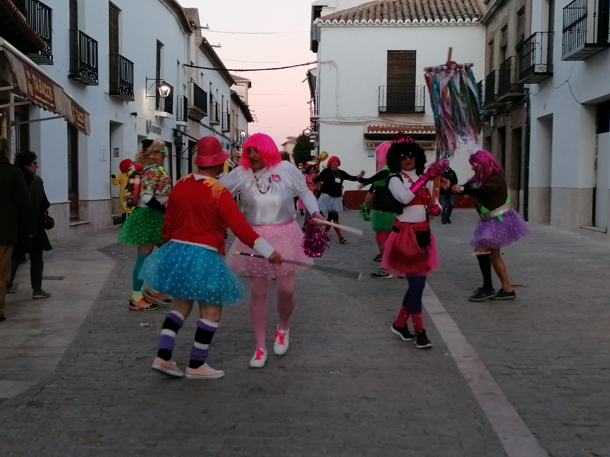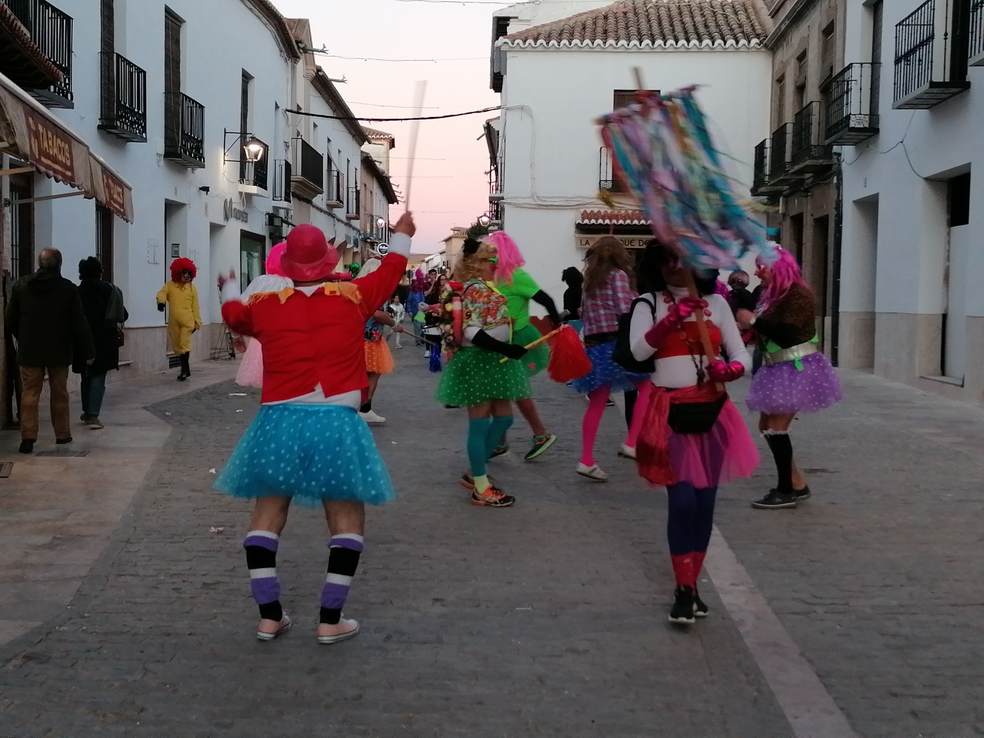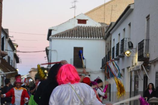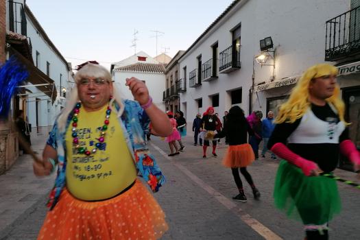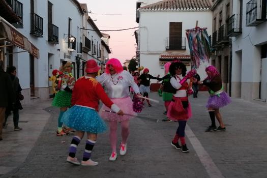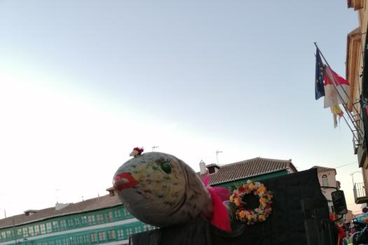 Con la quema de la pobre fallecida finalizó el entierro, pero no la fiesta. En ese mismo momento que comenzaba a quemarse, la música de Carnaval se escuchó en toda la Plaza Mayor. Las tristes mayorettes, una pareja de chinos que querían ayudar a prevenir y detectar posibles casos de coronavirus y otros muchos almagreños ahogaron las penas bailando también en la Plaza Mayor.