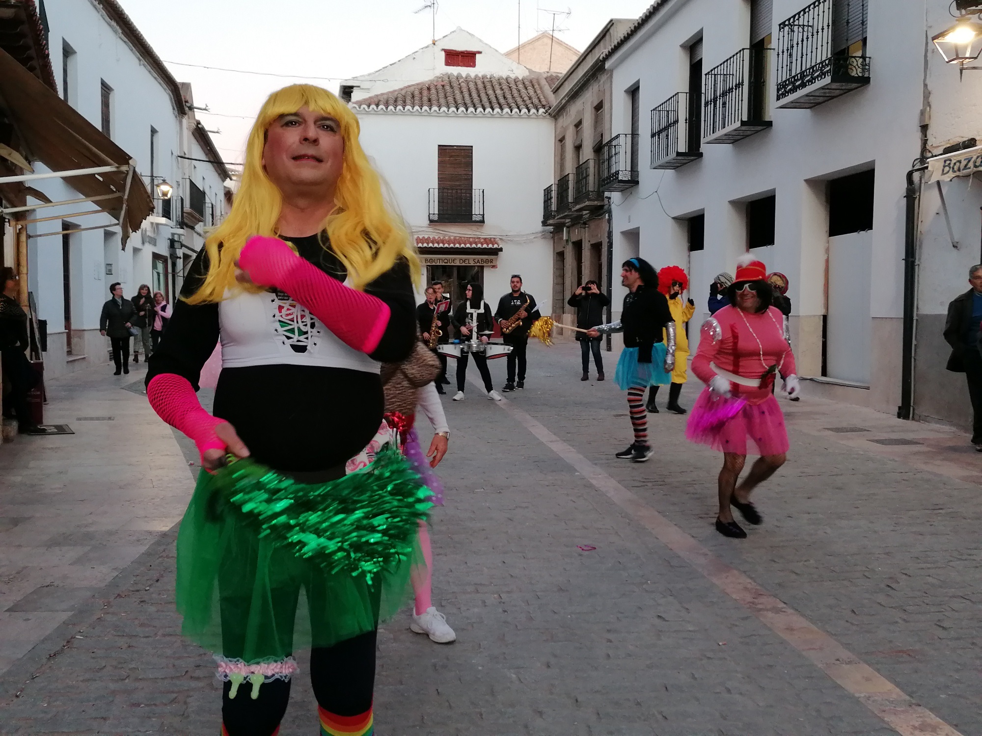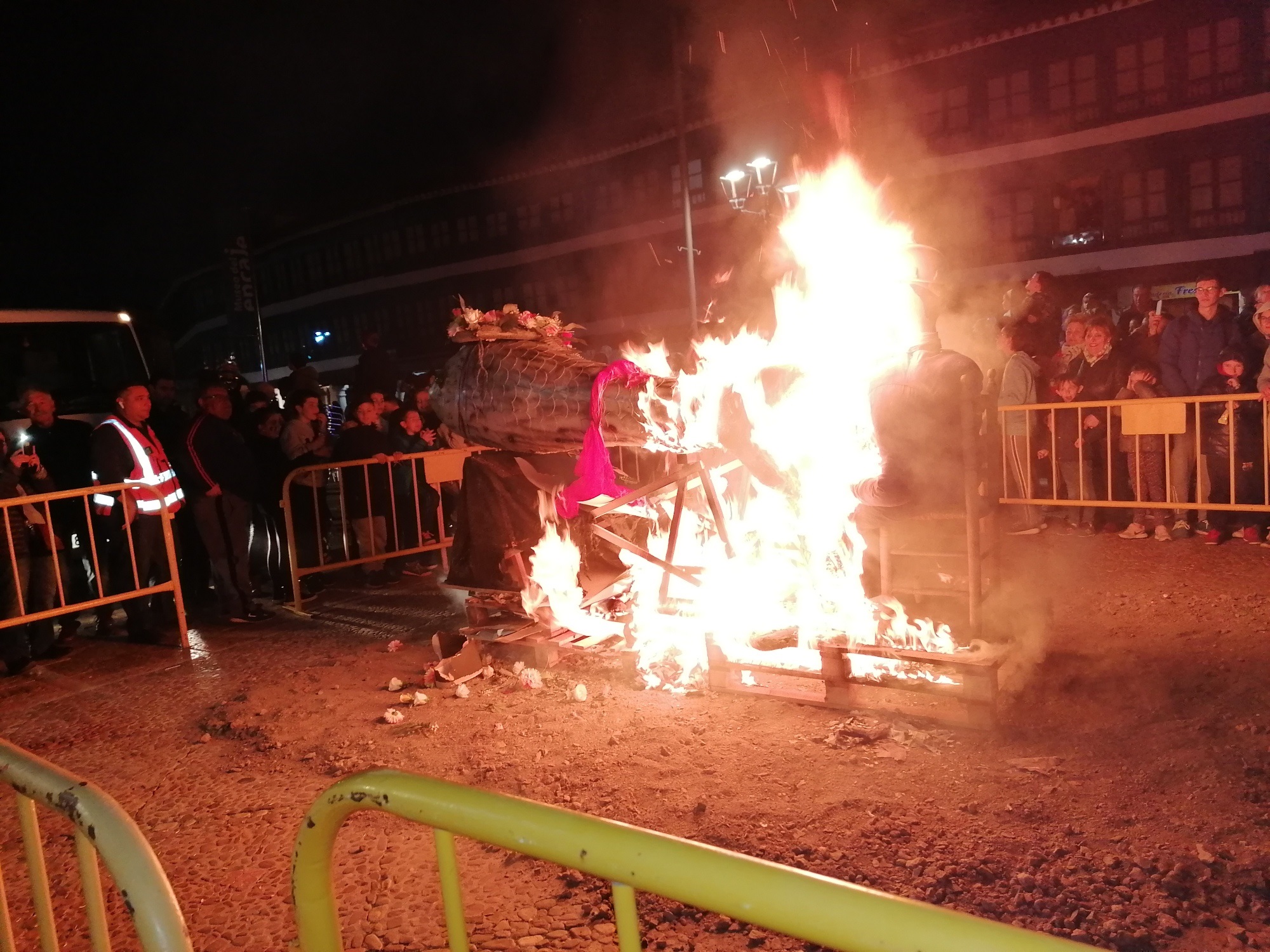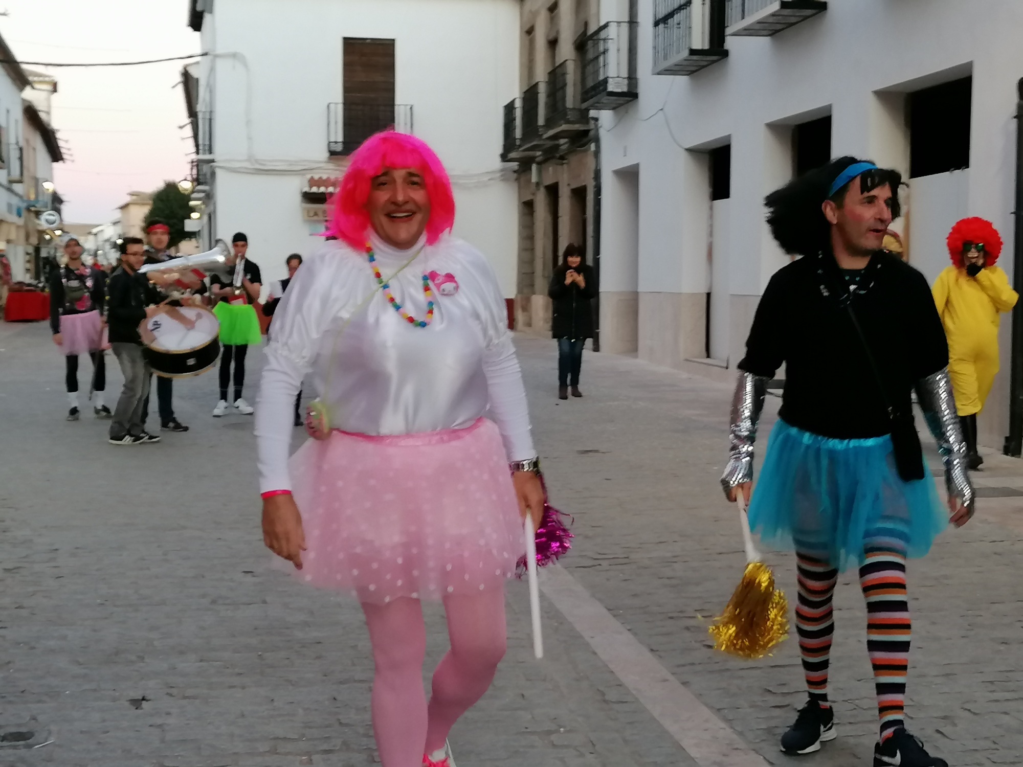 Con la quema de la pobre fallecida finalizó el entierro, pero no la fiesta. En ese mismo momento que comenzaba a quemarse, la música de Carnaval se escuchó en toda la Plaza Mayor. Las tristes mayorettes, una pareja de chinos que querían ayudar a prevenir y detectar posibles casos de coronavirus y otros muchos almagreños ahogaron las penas bailando también en la Plaza Mayor.