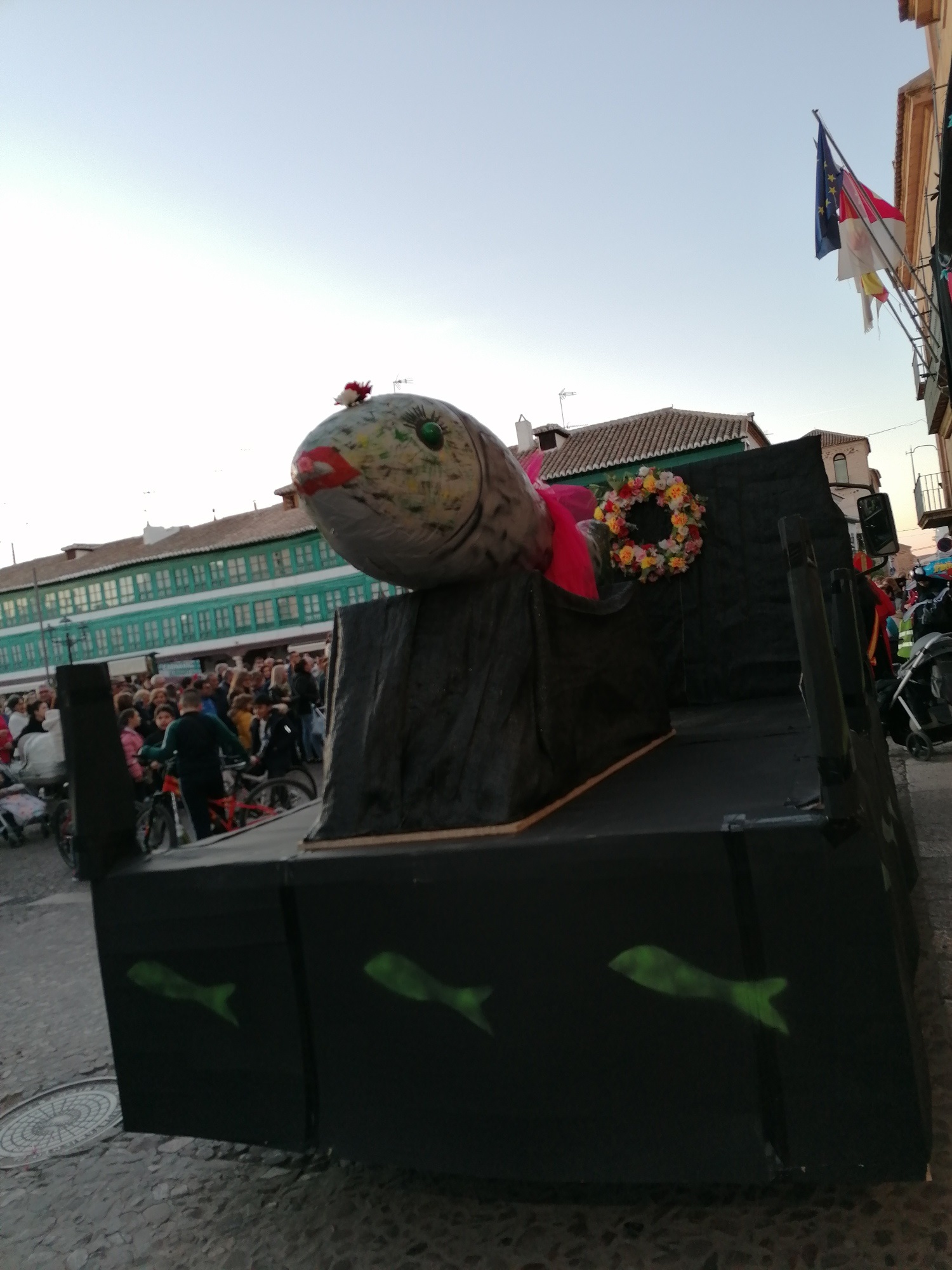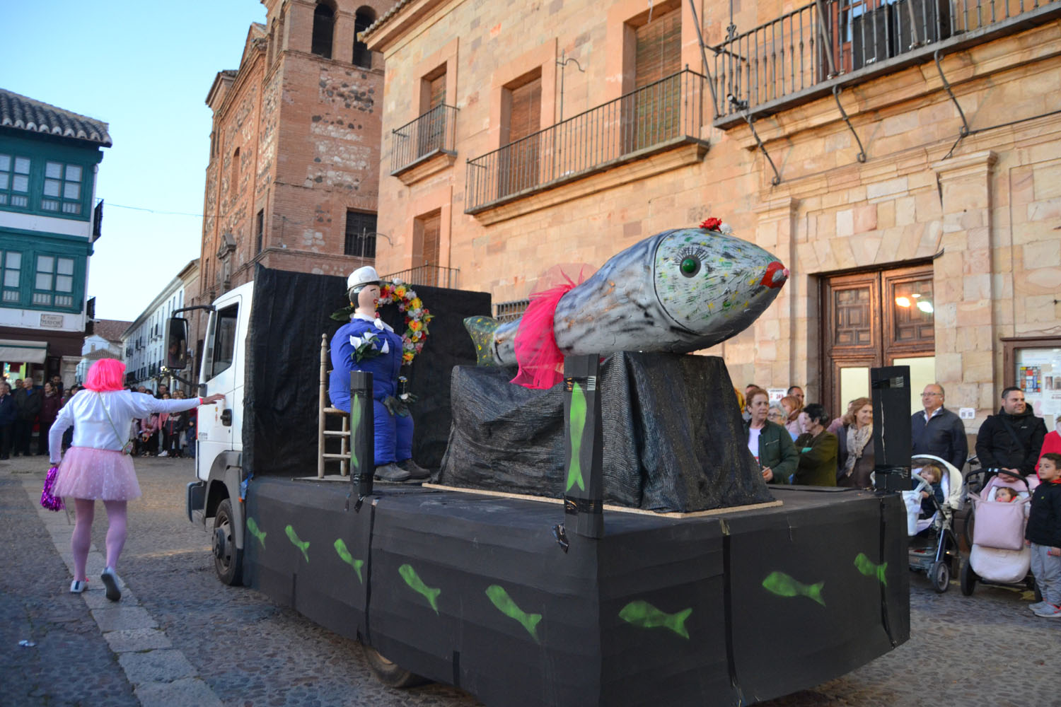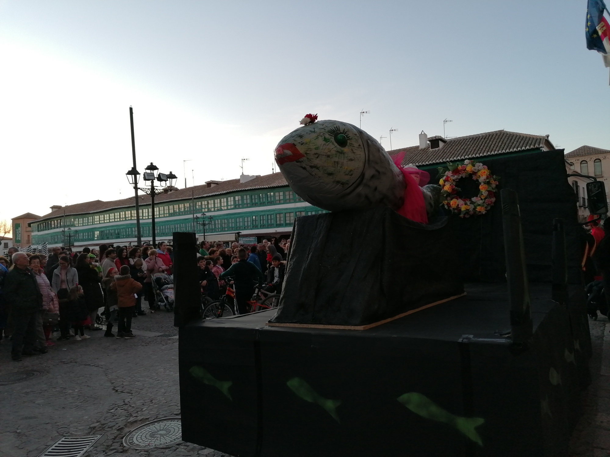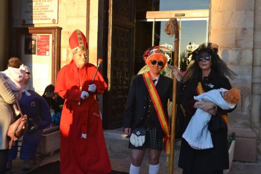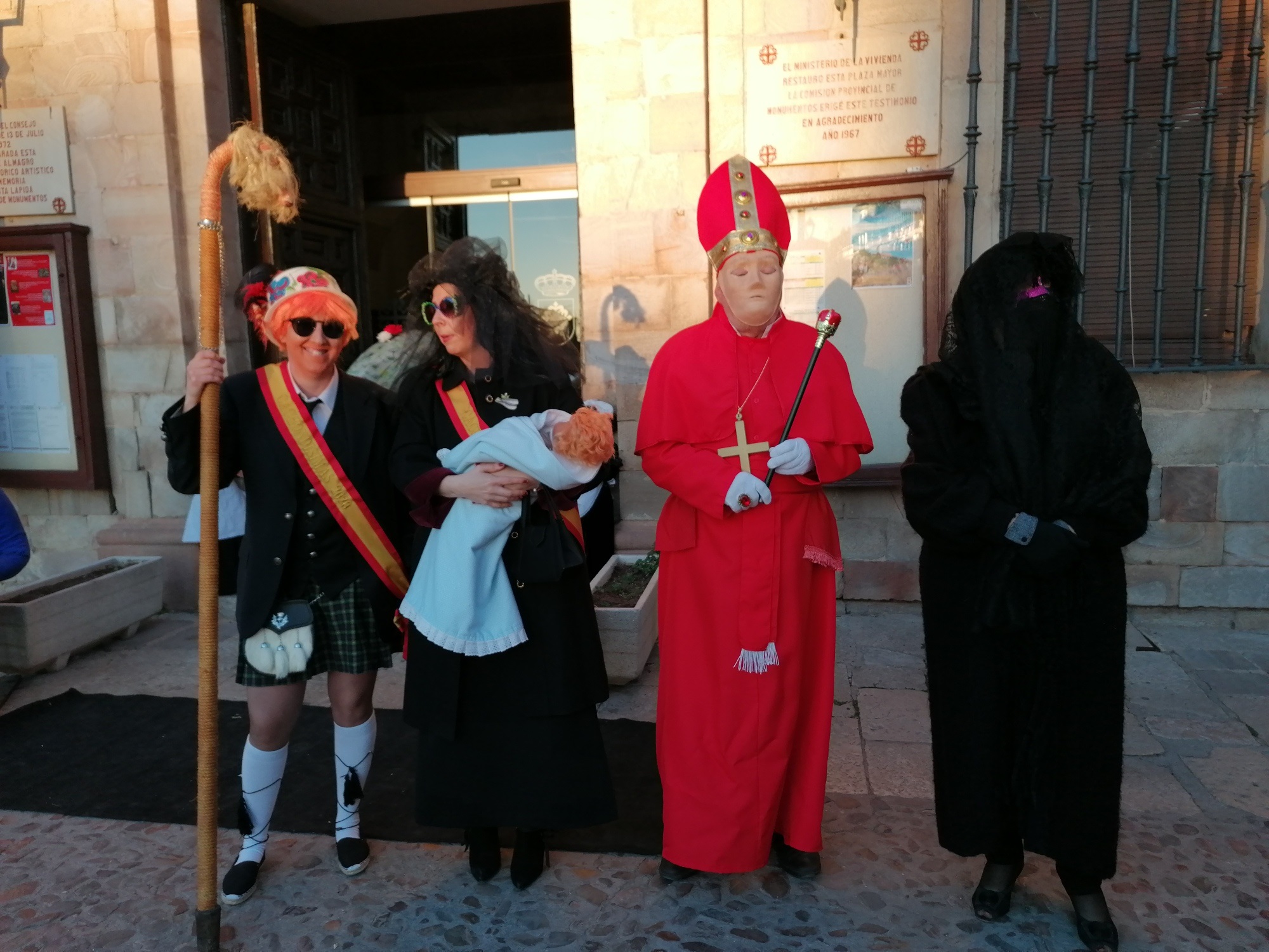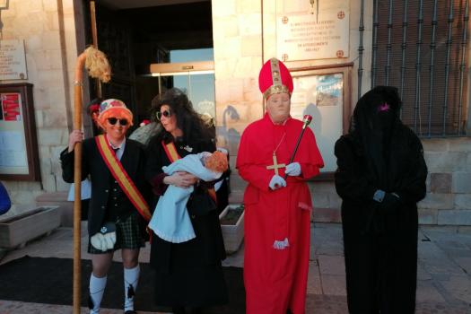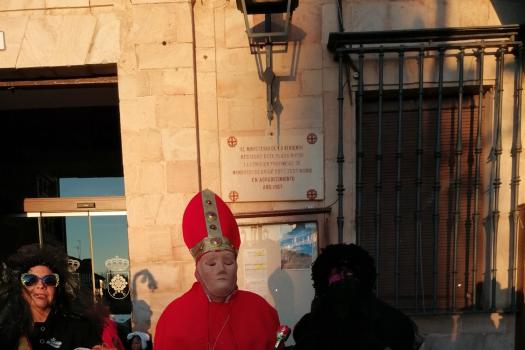 La Plaza Mayor se llenó en la tarde de ayer, miércoles, para presenciar el momento estrella del Carnaval de Almagro: el entierro de Doña Sardina. Hace años que la Plaza no reunía a tantas personas en un miércoles de Carnaval. La propuesta de centrar todas las actividades en la Plaza Mayor ha propiciado que muchos almagreños se hayan animado durante esta semana a celebrar el Carnaval. Ayer, ocurrió lo mismo. Sobre las 18 horas, almagreños disfrazados y no disfrazados comenzaron a reunirse en la Plaza. Doña Sardina yacía en la puerta del ayuntamiento, acompañada de sus Cachondísimas y muchos dolientes, sacerdotes, monjas…. para llorar la triste pérdida.