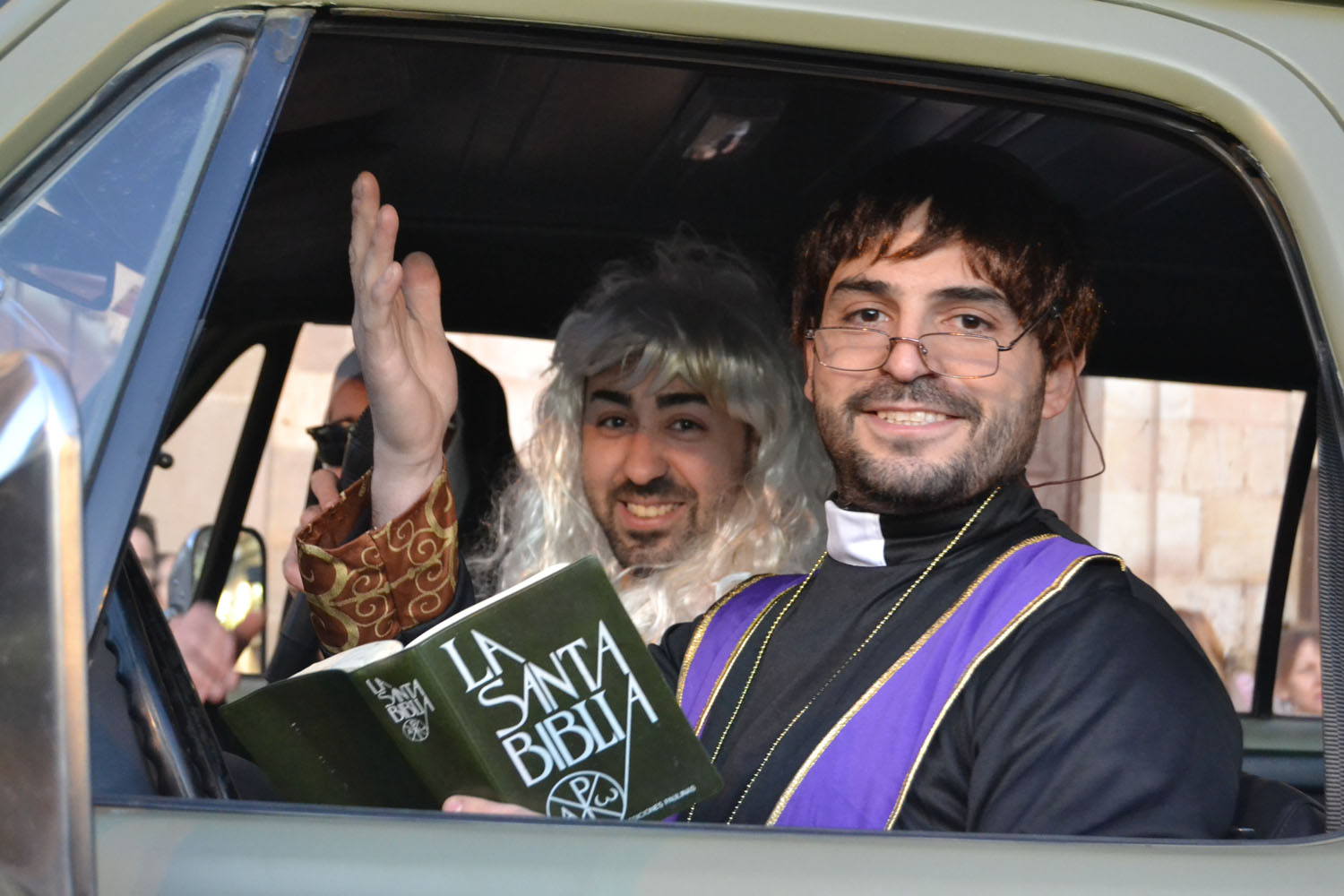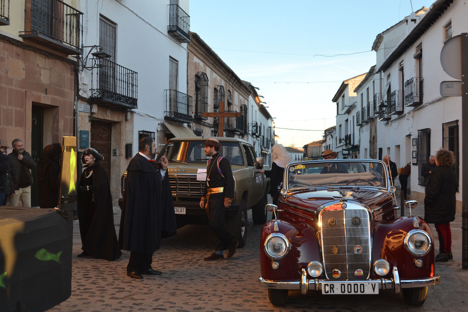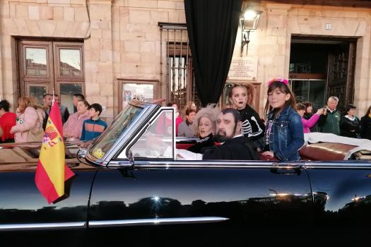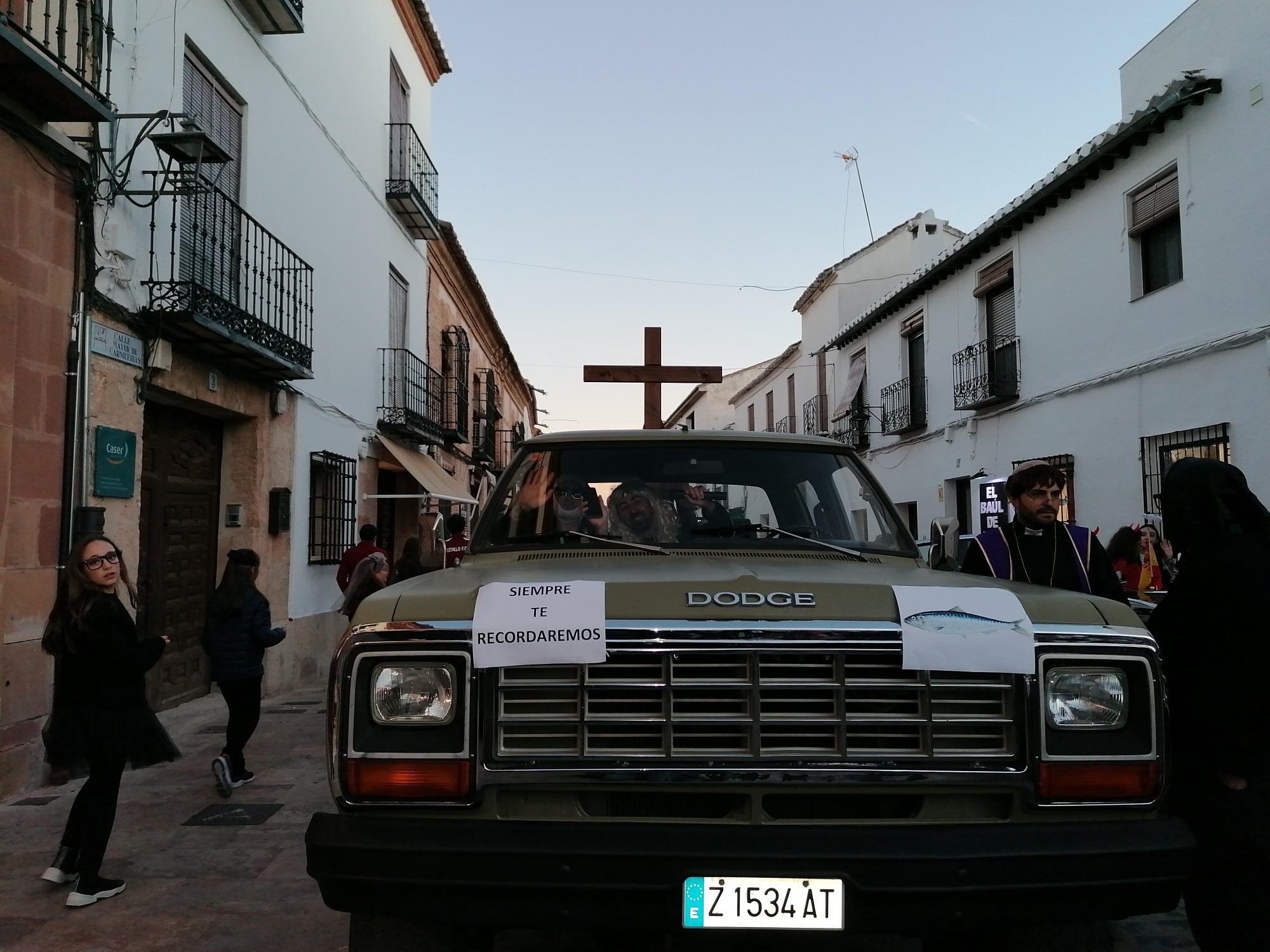 Anunciando el entierro por las calles de la ciudad, las espectaculares mayorettes. Vestidas para la ocasión con falda corta, bien maquilladas y un plumero como bastón mostraron su dolor más intenso por el fallecimiento de Doña Sardina. Un dolor en forma de baile acompasado, bien conjuntado y a ritmo de la charanga. Estas mayorettes abrieron el desfile, detrás los servicios municipales funerarios, un nutrido grupo de dolientes de todas las edades y una larga fila de vehículos antiguos cuyos dueños quisieron también dar su último adiós a la Sardina.