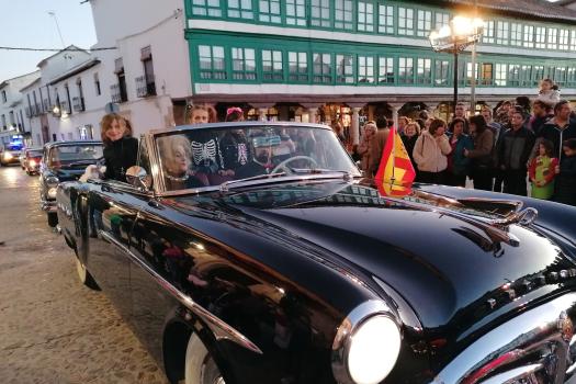 Una larga fila de coches antiguos cerró el entierro que acabó donde había empezado en la Plaza Mayor con la quema de la sardina.