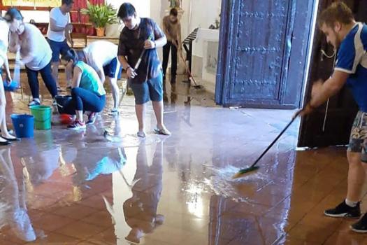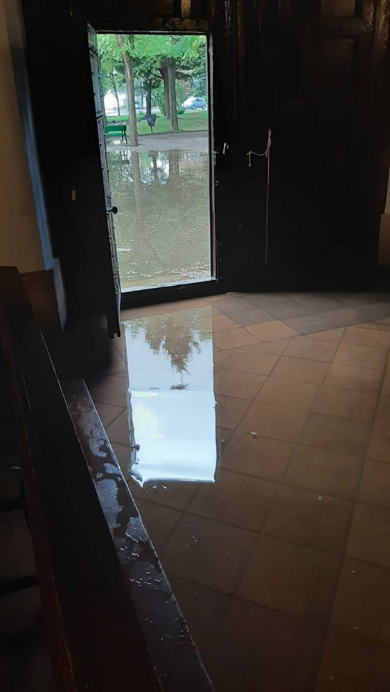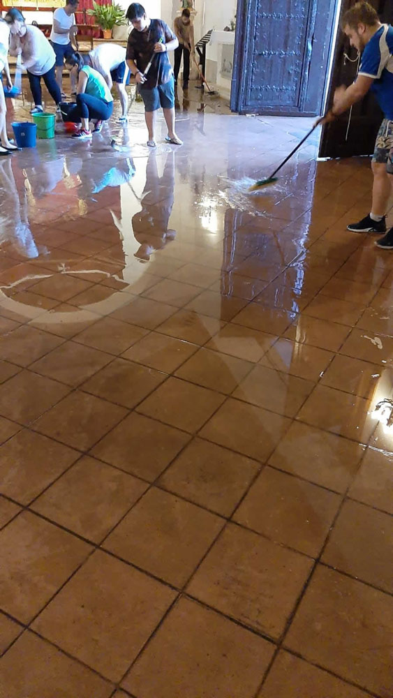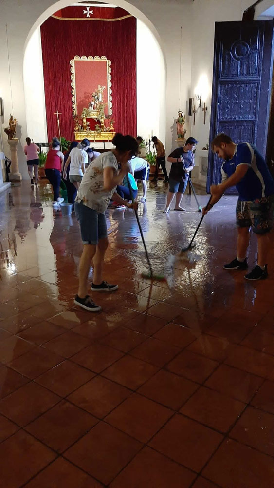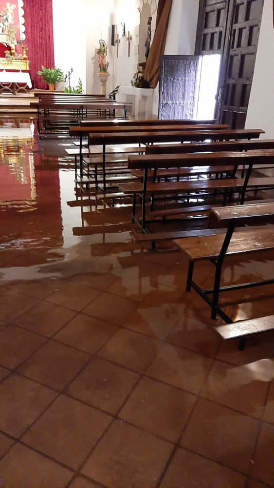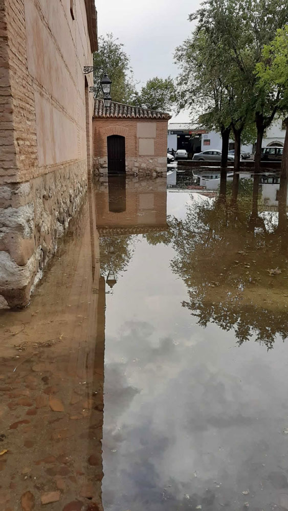 Pasadas poco más de las seis de la tarde de ayer comenzó a llover en Almagro. La intensidad de la lluvia fue en aumento, unido a rachas de viento considerables e incluso en algunas zonas la nube arrojó granizo lo que ha provocado diversos daños de consideración en los aproximadamente 15 minutos que duró la tormenta. El edificio más afectado ha sido la ermita de San Juan. El agua entró en su interior. Vecinos y miembros de la Hermandad de San Juan estuvieron achicando agua durante varias horas.