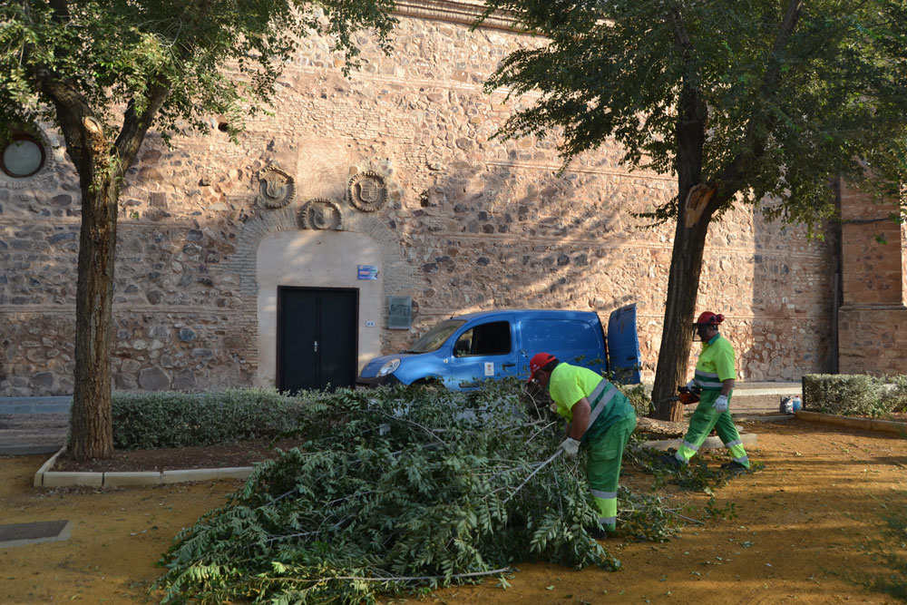 Esta mañana operarios del Ayuntamiento han cortado la rama arrancada y los electricistas han trabajado en en el restablecimiento de las zonas afectadas.