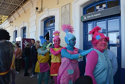 Las ganas de cantar, bailar y abrazarse han impregnado las calles de Almagro en el primer día de Carnaval. Como manda la tradición carnavalera, cada año una persona o grupo de personas son coronadas como las Cachondísimas del Carnaval. Y como manda la tradición, no se conoce su identidad hasta que bajan del tren que tiene parada en la estación encajera. A poco más de las 16:40 horas, el colorido y feliz grupo de Trolls ha llegado a Almagro. Las Cachondísimas 2018 han recibido con todos los honores a este grupo de criaturas que serán las encargadas de velar por la diversión y la guasa durante este Carnaval 2019.