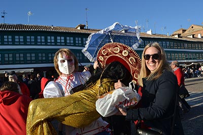 La buena temperatura ha animado a muchos almagreños, de todas las edades, a acompañar a sus Cachondísimas hasta la Plaza Mayor donde el Ayuntamiento ha invitado a limoná. Novias, payasos, piratas, espantapájaros, mexicanos, una banda muy conocida de ladrones, concursantes de Masterchef, presos, policías del FBI, superhéroes, trogloditas e incluso una caja de cervezas Heineken. No han faltado tampoco la máscara guarra, signo de identidad del Carnaval almagreño.