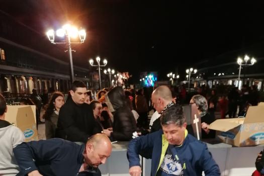 A las 19 horas, Doña Sardina desfilará por las calles de Almagro en su último paseo por la ciudad. Sus Cachondísimas y los más carnavaleros pasaron buena parte de la noche de ayer en el hall del Ayuntamiento apesadumbrados ante la lamentable pérdida. Con unos trocitos de jamón y limonada pasaron este trance en una noche fría, triste y como no podía ser de otra manera, también cargada de mucho humor.