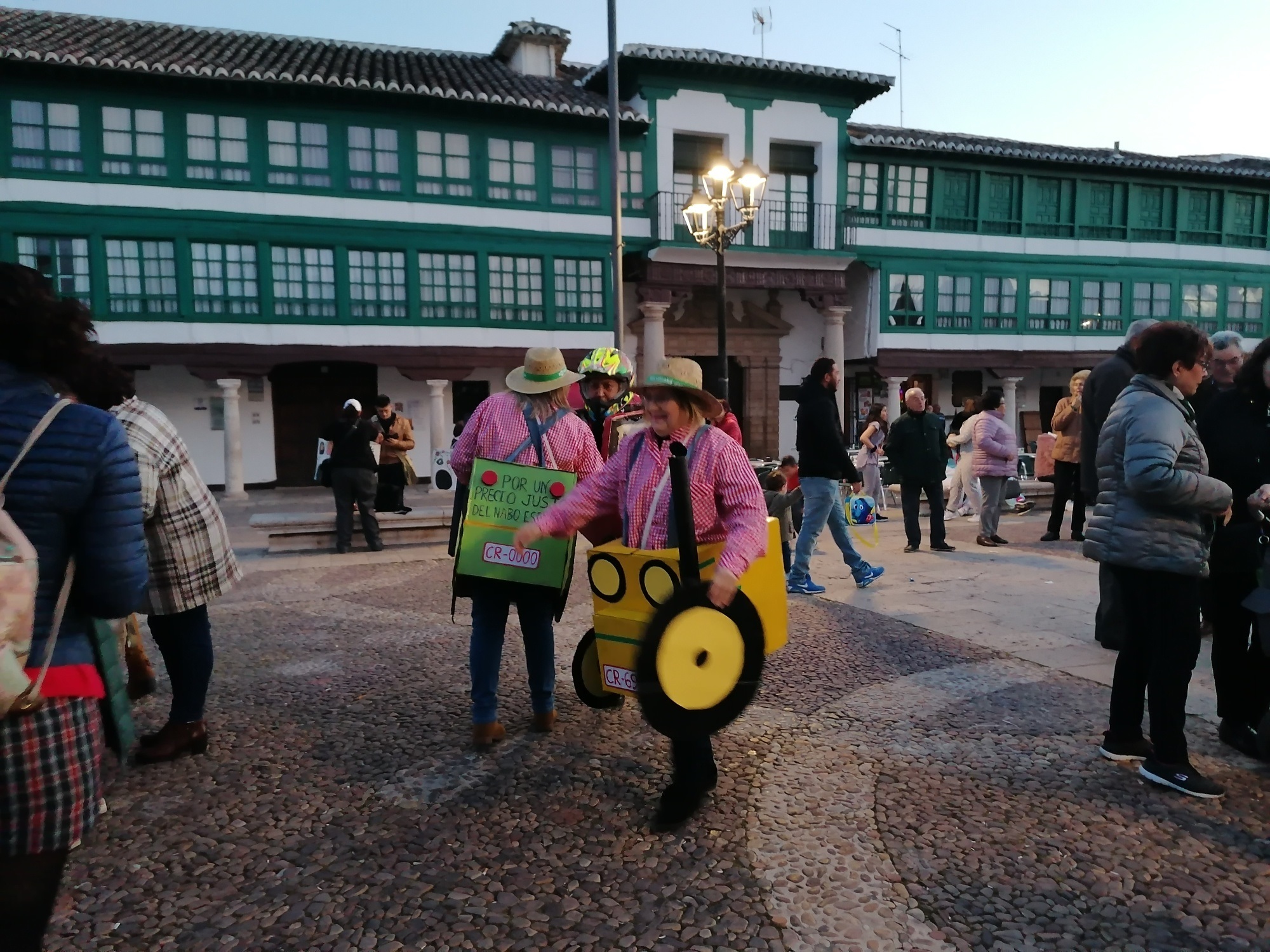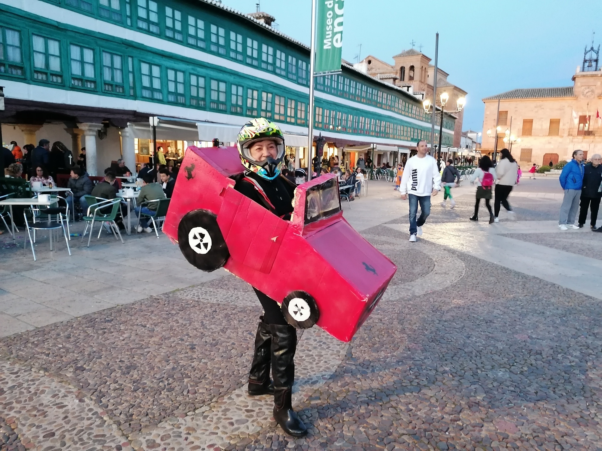 La Plaza Mayor se volvió a llenar de gente en la tarde del Martes de Carnaval. Niños disfrazados, en su mayoría, pero también bastantes adultos que bailaron con música de Dj. hasta la merienda de magro con tomate invitación de la Concejalía de Festejos. Aunque la tarde estaba dedicada a las cuatro ruedas, a los autos locos, pocos vehículos carnavaleros se animaron a salir a la calle y eso que había hasta servicio técnico. Pero quienes se disfrazaron, pusieron todo su empeño en llegar los primeros de la carrera. El Ayuntamiento, consciente de la dificultad de la carrera, recompensó a todos sus participantes con un premio, donado por empresas de Almagro.